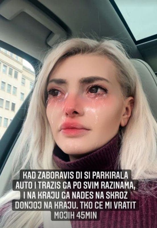 "Kad zaboraviš gdje si parkirala auto i tražiš ga po svim razinama, i na kraju ga nađeš na skroz donjoj na kraju. Tko će mi vratiti mojih 45 minuta", napisala je.