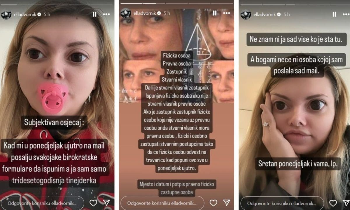 Ella Dvornik podijelila je na svom Instagram profilu poteškoće s kojima se susreće na jedan obični ponedjeljak.