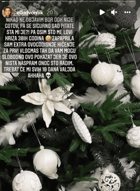 "Nikad ne objavim bor dok nije gotov, pa se sigurno sad pitate što mi je? Pa osim što me lovi kriza 30-ih godina, zapaprila sam extra ovogodišnje kićenje za prvi vlogmas tako da vam mogu slobodno ovo pokazati, jer je ovo ništa naspram onog što radim. Trebat će mi svih 10 dana valjda", poručila je Ella.