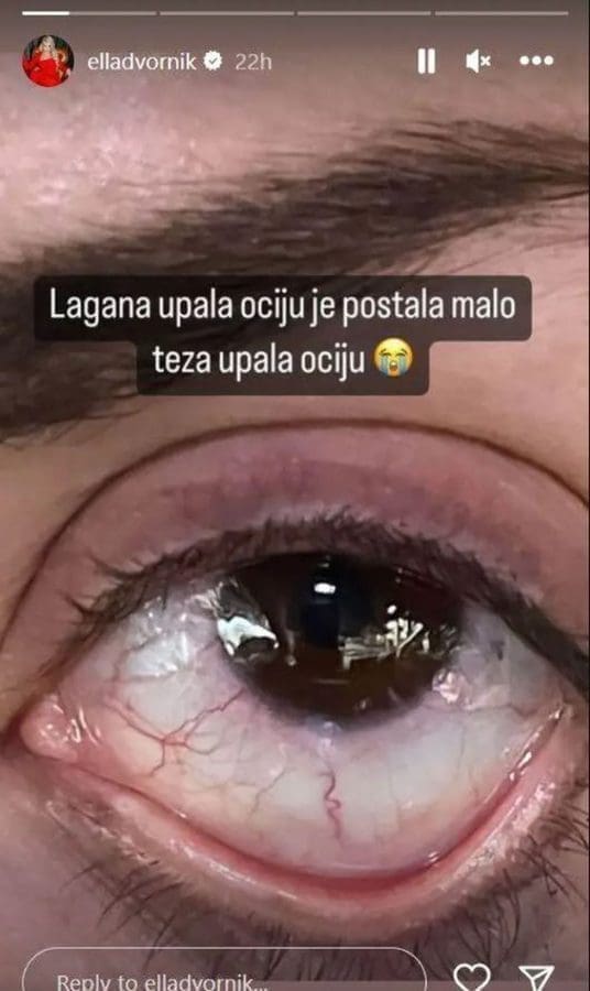 ''Lagana upala očiju je postala malo teža upala očiju'', napisala je na fotografiji svog crvenog oka.