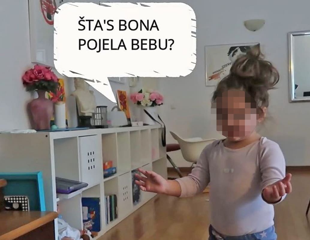 Ella je vlog na svome Instagramu najavila komičnom fotografijom svoje kćerke koja trudnoj mami kaže: "Šta's bona pojela bebu?".