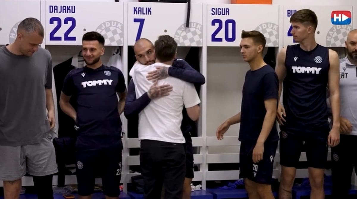 Jutros je HNK Hajduk objavio emotivan video u kojem su prikazali trenutak kada se Jakobušić oprostio s igračima i cijelim stručnim stožerom.