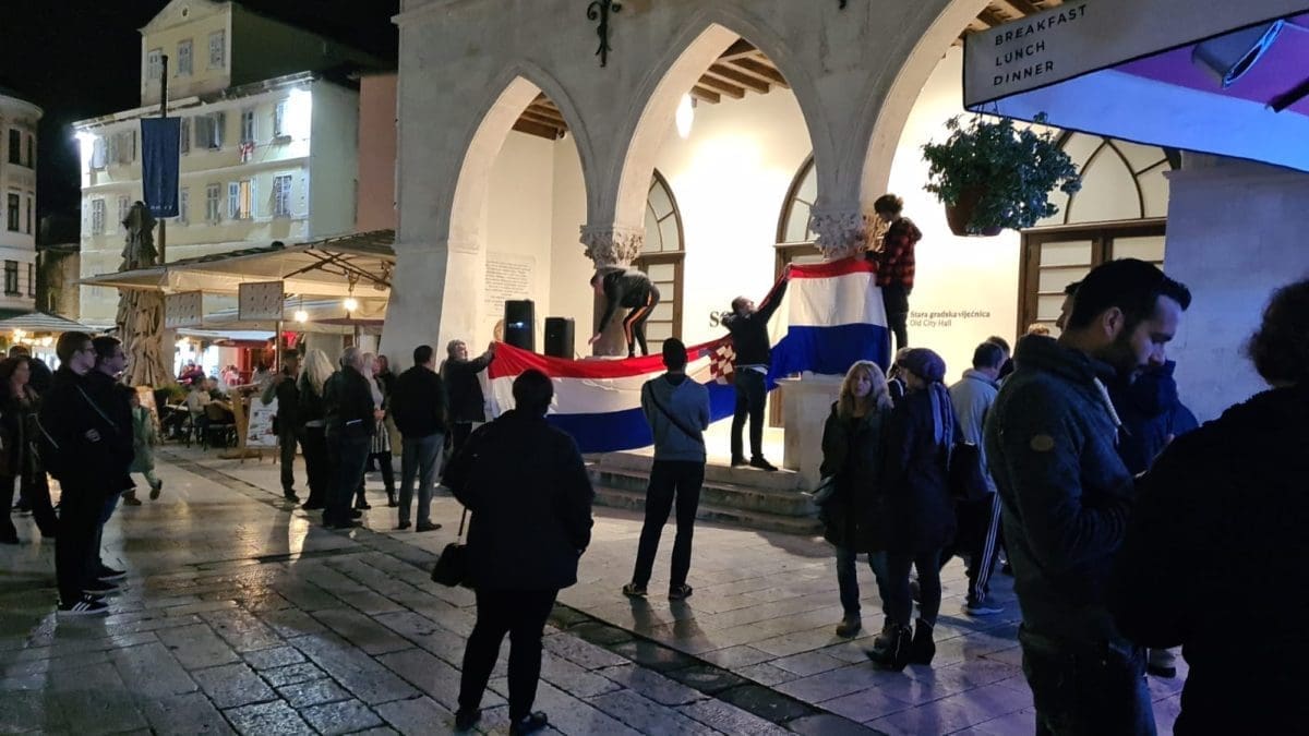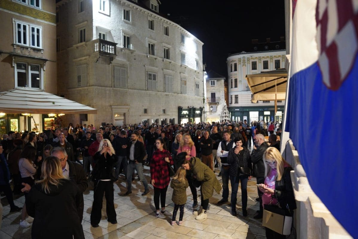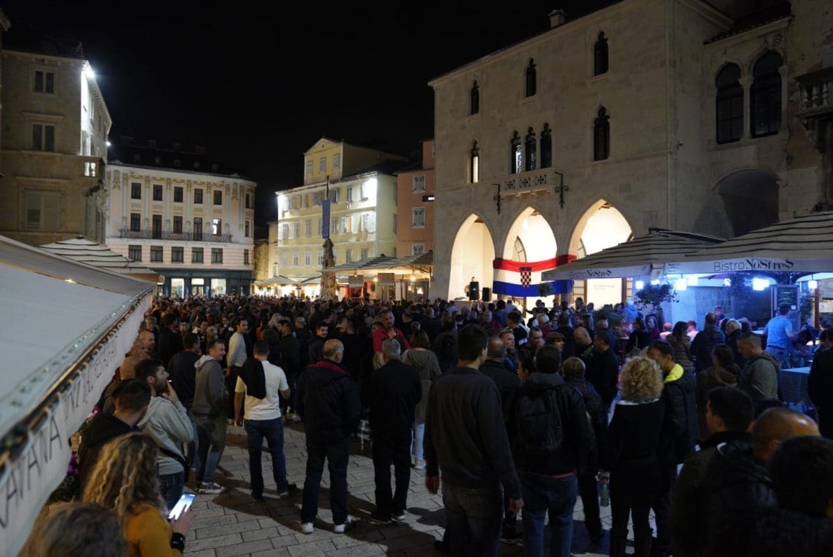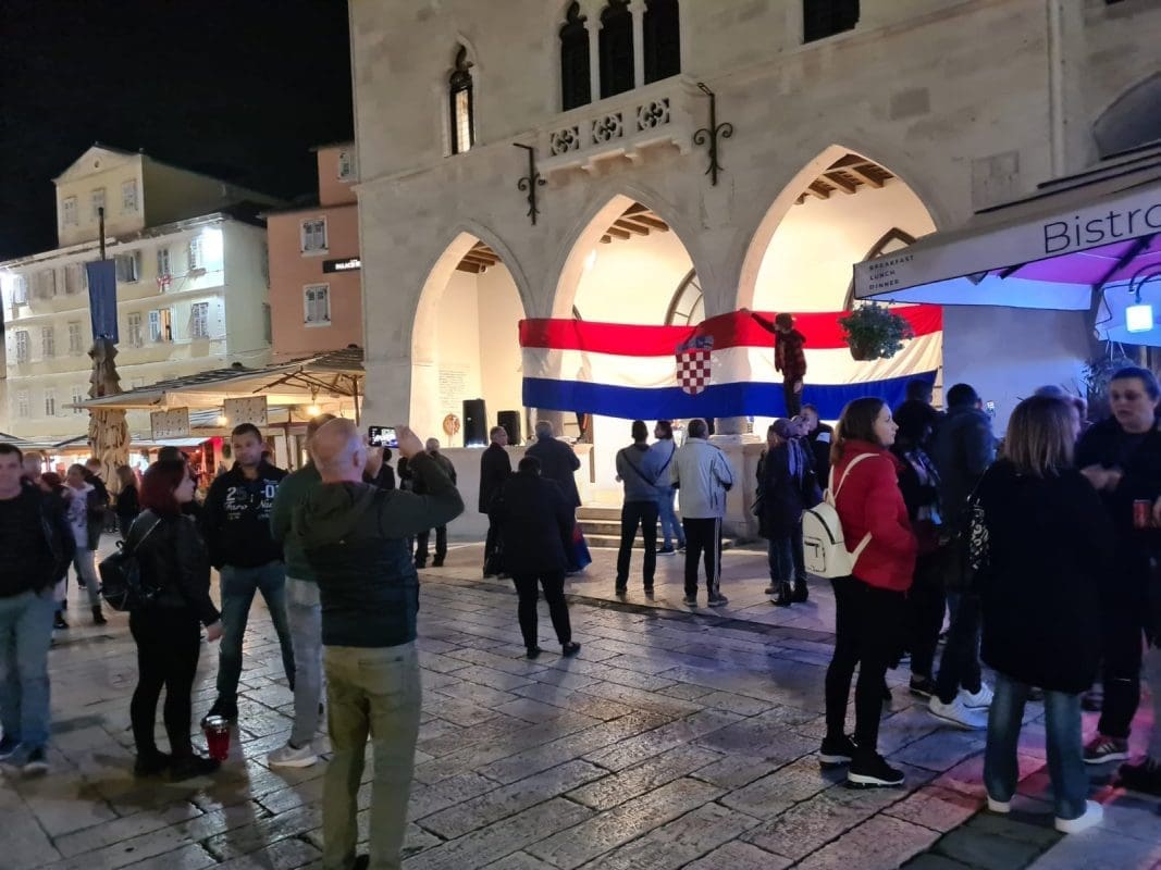 Građani koji se protive uvođenju obveznih COVID potvrda i večeras se okupljaju na splitskom Narodnom trgu, ili Pjaci, kako bi prosvjedovali ispred stare gradske vijećnice.