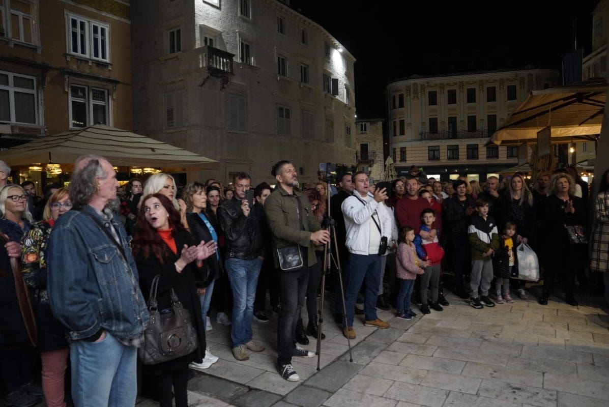 Na Pjaci se i večeras okupilo velik broj građana. Pjevaju se Hajdučke pjesme, a bilo je ponovno i govornika koji su iskazivali svoje nezadovoljstvo.