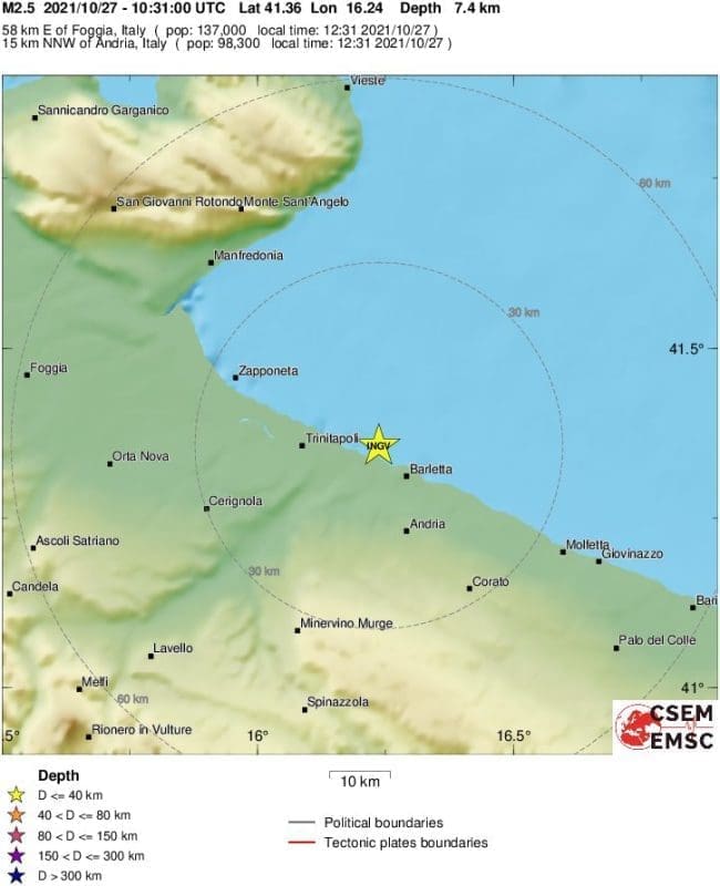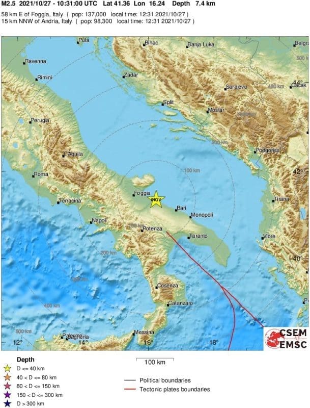 Epicentar je bio 15 kilometara sjeverozapadno od Andrije, a magnituda potresa je iznosila 2.5 prema R.