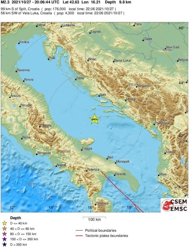 U 22 sata i 6 minuta slab potres zabilježen je u srednjem Jadranu.
