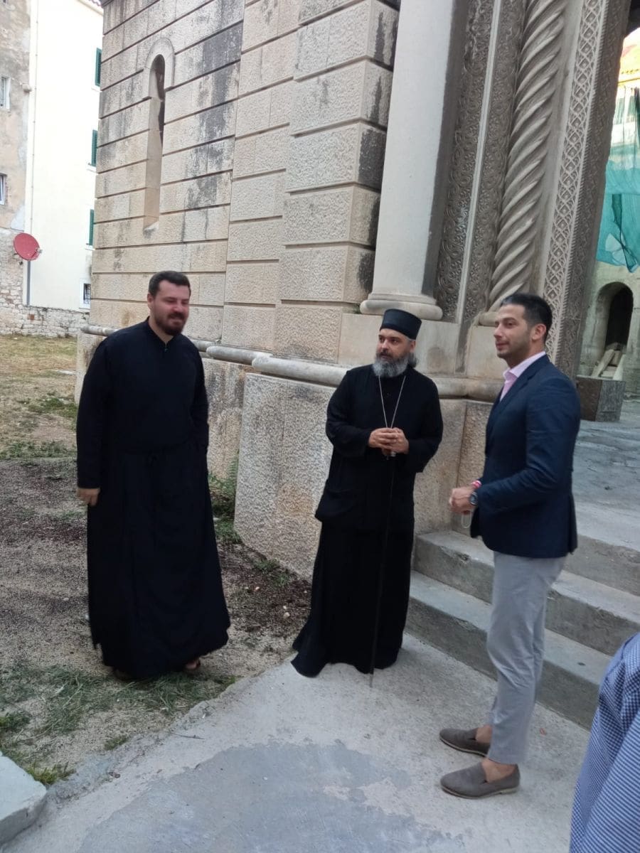 Primio ga je protojerej Milan Kadijević koji ga je upoznao s povijesti nedovršenog hrama. Tu su se našli i brojni građani Splita koji su pravoslavne vjeroispovijesti pa su zajedno s Vladikom krenuli u obilazak hrama.