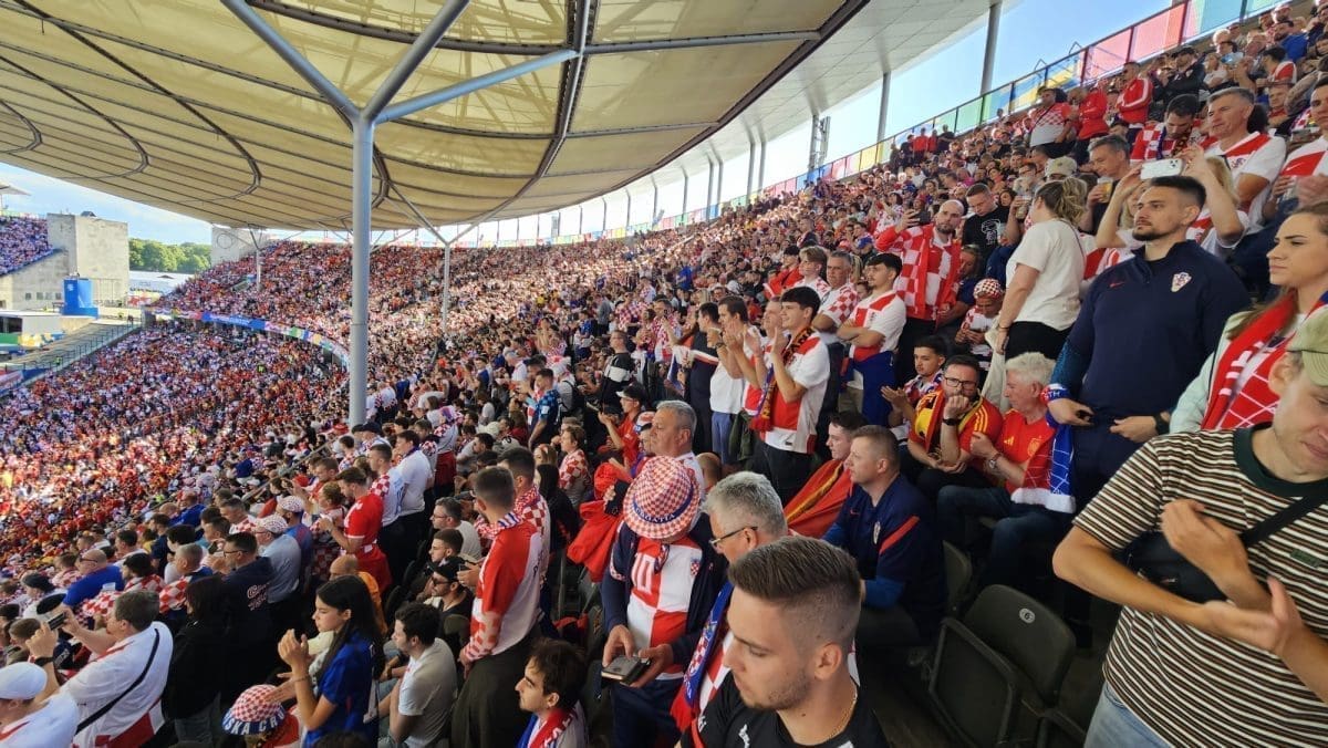 Podrška našoj reprezentaciji nije izostala na Olimpijskom stadionu u Berlinu. Navijači Hrvatske uzbuđeni i nervozni prate tijek igre na Olimpijskom stadionu.