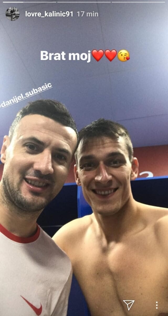 Velika fešta mogla je početi u svlačionici. Zajedno su prvo zapjevali Dejan Lovren i Lovre Kalinić, a onda su im se pridružili i ostali. Kalinić je na svom Instagramu objavio fotografiju sa Subašićem uz komentar "Brat moj".