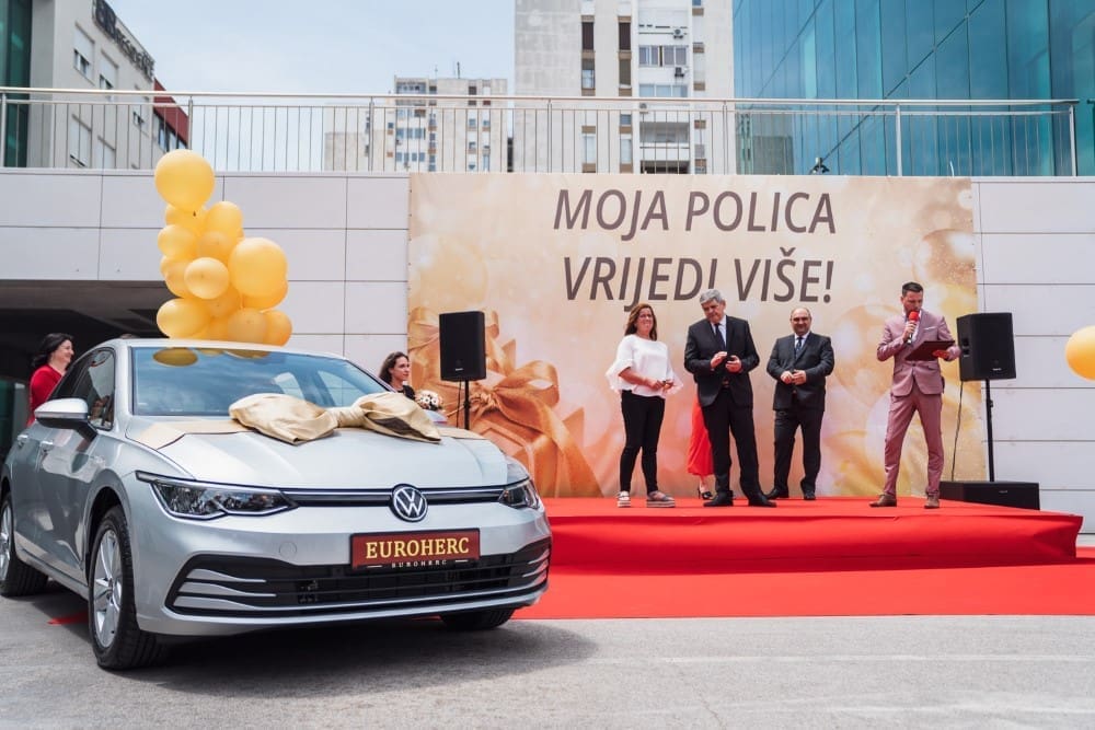 U pet hrvatskih gradova: Osijeku, Varaždinu, Rijeci, Splitu i Zagrebu, Euroherc i Adriatic osiguranje uručuje 10 automobila Golf 8 i 100 novčanih nagrada sretnim dobitnicima prvog kola nagradnih igara „Moja polica u Eurohercu/Adriaticu vrijedi više“, u kojima su sudjelovali svi osiguranici, fizičke osobe, koji su od 15. veljače do 30. travnja ugovorili policu osiguranja od autoodgovornosti i/ili kasko osiguranja za svoje vozilo.