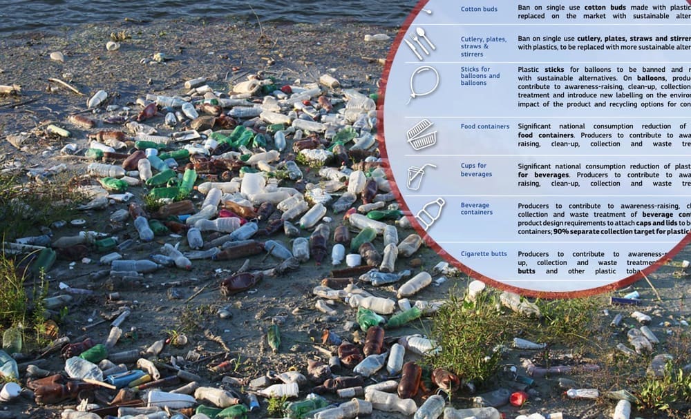 Europska komisija predlaže zabranu plastičnih proizvoda koji se najčešće nalaze u moru i na plažama, poput štapića za uši, plastičnog pribora za jelo, smanjenje proizvodnje plastičnih kutija za hranu, plastičnih čaša. Za druge predmete poput plastičnih boca, duhana, plastičnih vrećica predlažu da proizvođači sudjeluju u osvješatavnju građana o zaštiti okoliša te u čišćenju svojih proizvod s javnih površina.