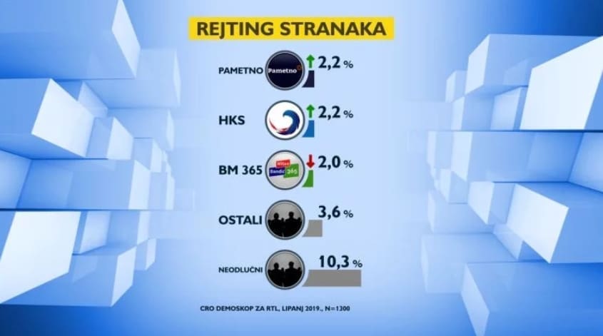 Baš kao i stranka Pametno s 2,2 posto podrške. Istu potporu ima i stranka Ruže Tomašić kojoj je, u odnosu na svibanj, potpora čak četiri puta veća. A dok zagrebački gradonačelnik Milan Bandić ratuje s partnericom u vladi Blaženkom Divjak, izgubio je postotni poen u odnosu na mjesec ranije (sada je na 2 posto). Sve ostale stranke imaju tek oko 1 posto potpore, pa tako i Glas Anke Mrak Taritaš i Start Dalije Orešković; obje stranke padaju na 0,9 posto. Neodlučnih je 10,3 posto (prema prošlomjesečnih 9,6 posto).