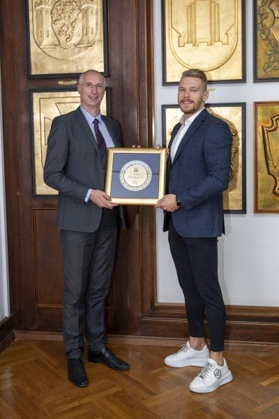Gradonačelnik Ivica Puljak upriličio je danas svečani prijem za predstavnike Hrvatskog vaterpolskog saveza (HVS) i Hrvatske vaterpolo reprezentacije u povodu osvajanja titule europskog prvaka na Prvenstvu Europe u Splitu. Gradonačelnik je u ime Grada Splita s ponosom i zadovoljstvom uputio iskrene čestitke „zlatnim“ vaterpolistima, reprezentaciji i cjelokupnom HVS-u na osvajanju velike sportske titule.