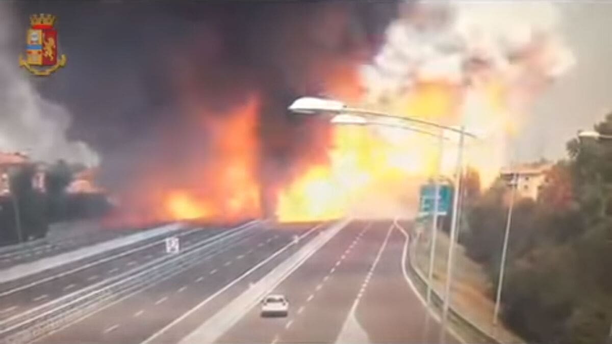 U blizini aerodroma u Bologni tijekom dana odjeknula je jaka eksplozija. Službenog izvješća još nema, ali po snimkama se vidi kako je do eksplozije došlo nakon sudara cisterne i kamiona koji su stajali u koloni.