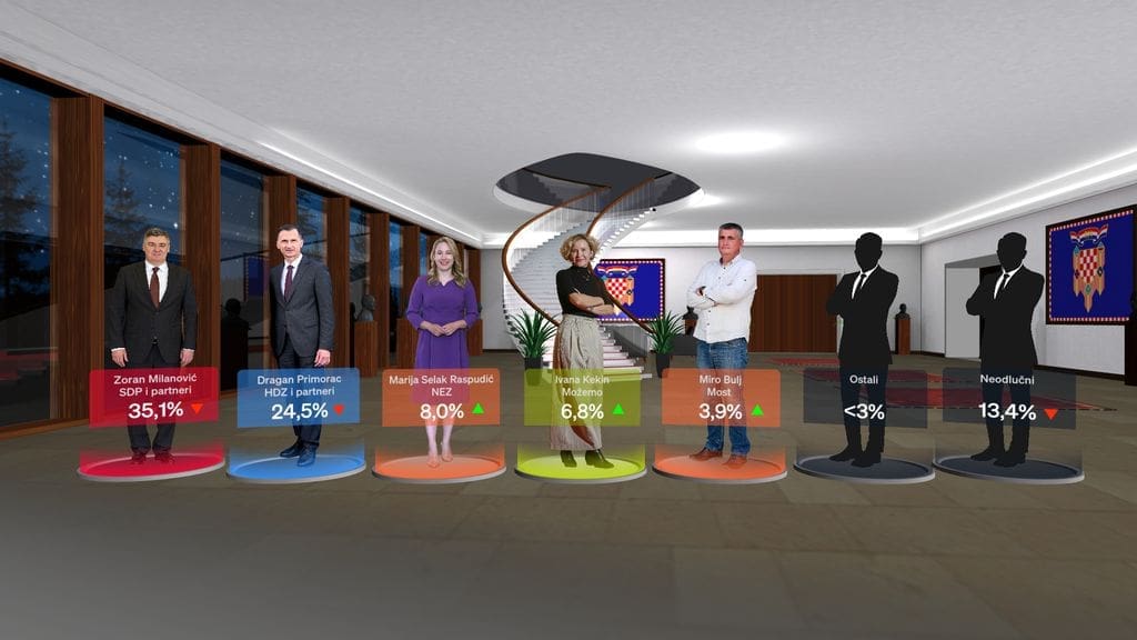 Novi Crobarometar pokazuje blagi pad predsjedničkih kandidata HDZ-a i SDP-a dok im se približavaju kandidatkinja Možemo i nezavisna kandidatkinja.