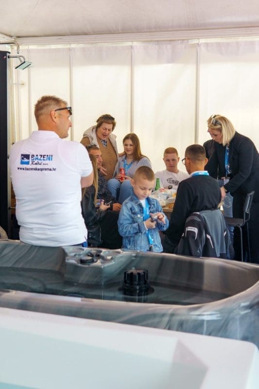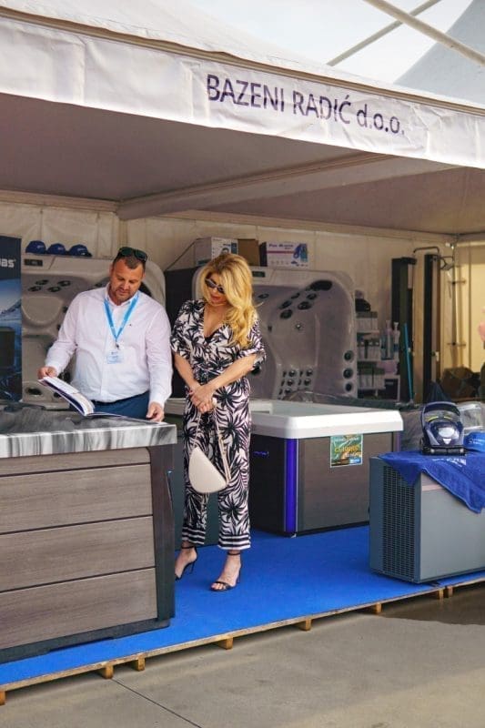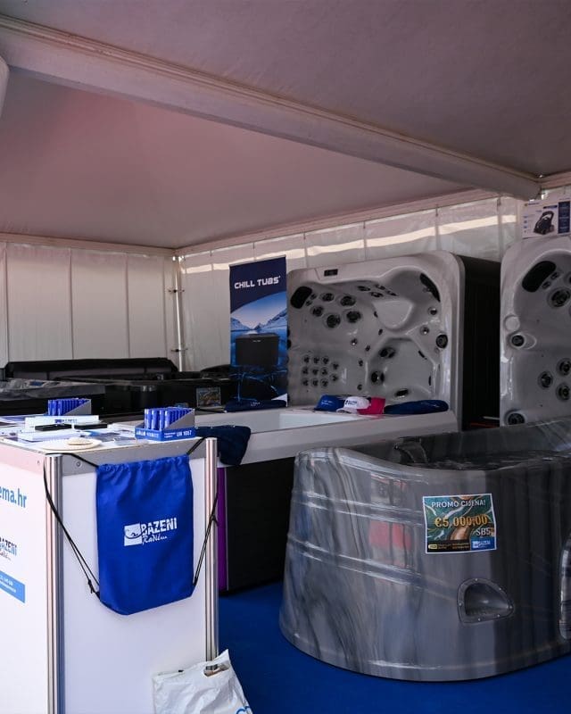 Izložbeni prostor firme Bazeni Radić plijenio je pozornost posjetitelja atraktivnim izložbenim modelima hidromasažnih kada za koje su ekskluzivni uvoznik u RH dodatno oplemenjenim adekvatnom rasvjetom. Osim hidromasažnih kada izložili su i dodatnu opremu za bazene i čišćenje bazena i kada, a uz sve to posjetiteljima su osigurali značajne popuste i podijelili mnoštvo poklona, kako to sajmu i priliči.