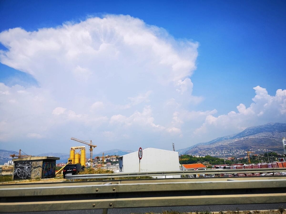 Dok je u većini predjela bilo suho, u popodnevnim satima razvio se olujni oblak na sinjskom području donoseći prolaznu kišu i grmljavinske pljuskove. Prema podacima mreže postaja Pljusak.com, u Sinju je u kratko vrijeme palo 7 litara kiše po kvadratnom metru, u Muću 3 litre.