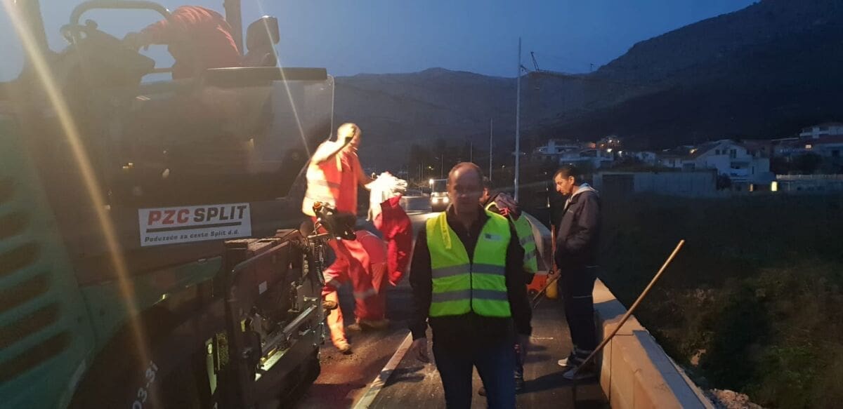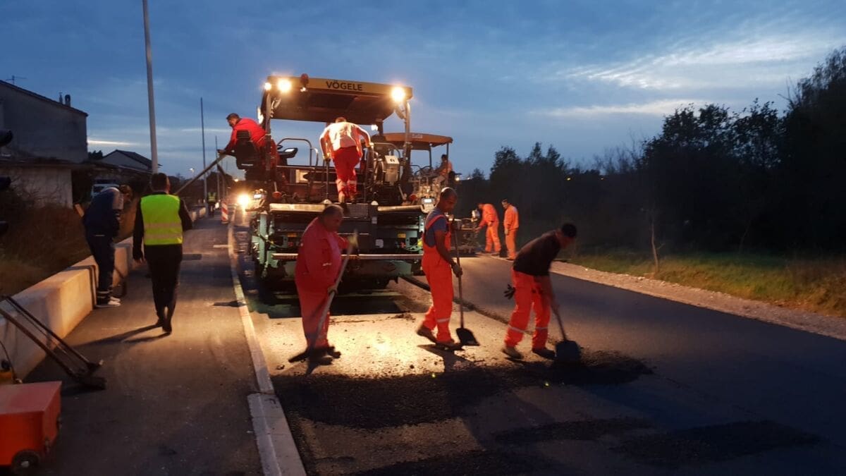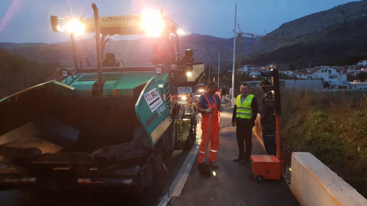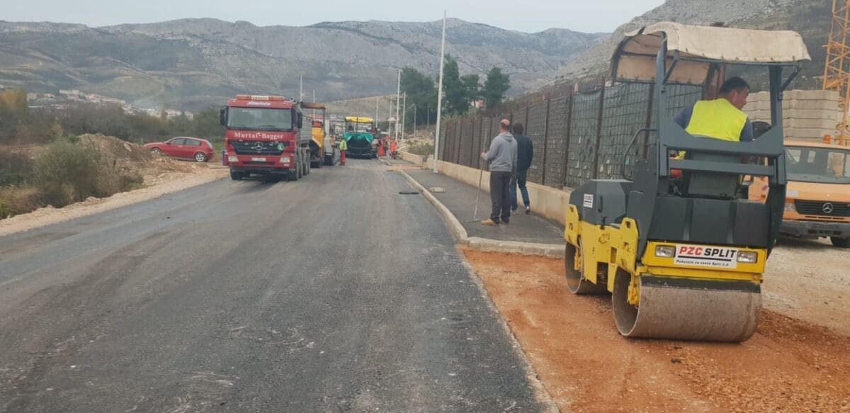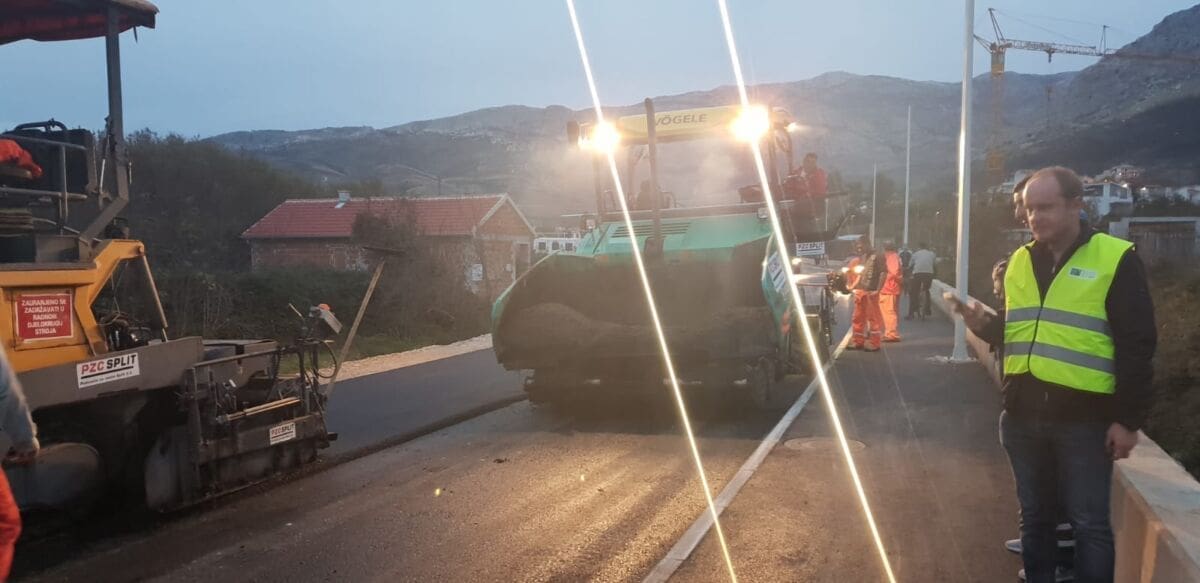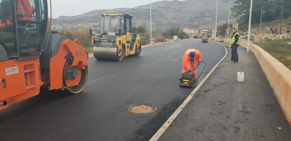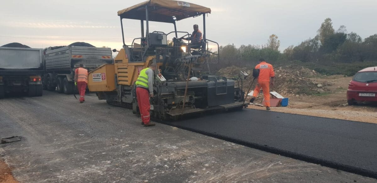 Nakon višemjesečnih opsežnih radova, asfaltira se završni sloj dionice županijske ceste 6142 od Strožanca do Žrnovnice.