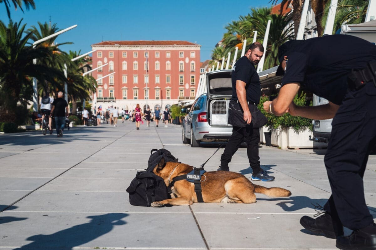Jesmo spomenuli da je i inspektor Rex bio tu? Ok, ne zove Rex, ali nas baš podsjeća na popularnog Rexa iz kriminalističke serije, baš kao što će nam bilo koji škotski ovčar uvijek biti Lassie. No, šalu na stranu, danas su na Rivi bila čak dva policijska psa, a zovu se Zeus i Hugo. Jedan je osjetljiv na droge, drugi na eksploziv, tako da s njima nema šale.
