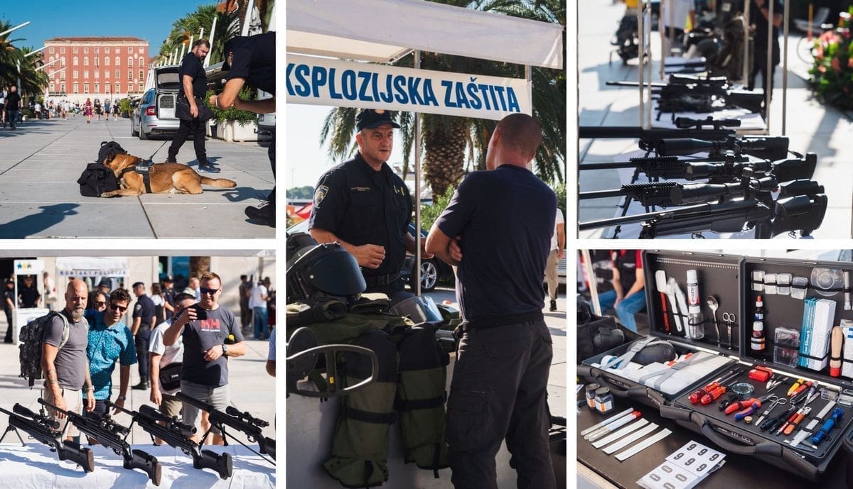 Teško naoružanje, policijski psi, ekipa za očevide - sve to, i još više od toga, bilo je danas na splitskoj Rivi. I ne, nije se ništa dogodilo, policija danas slavi svoj dan pa su se pred građanima "pohvalili" onim što imaju i s čim raspolažu u svom poslu.