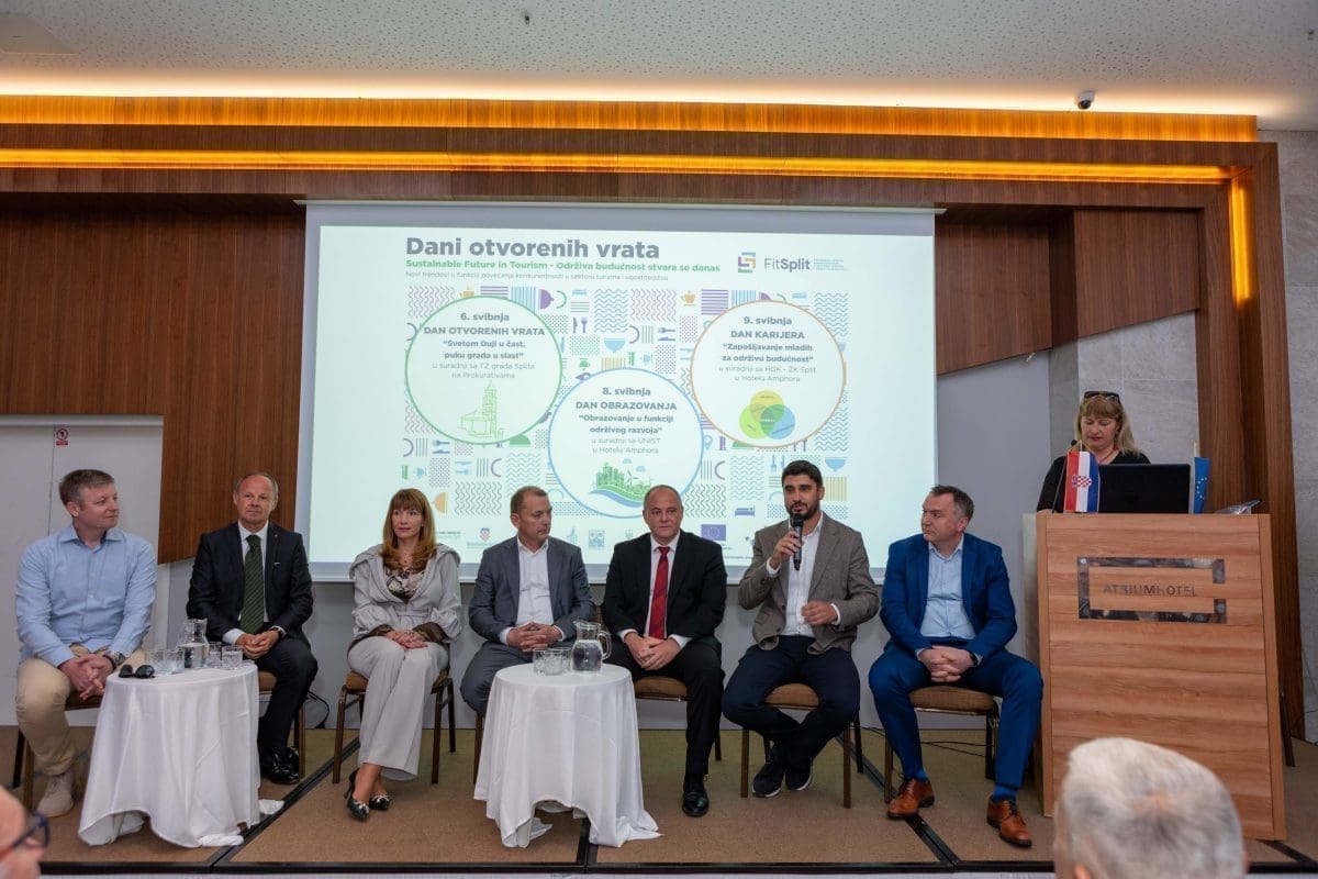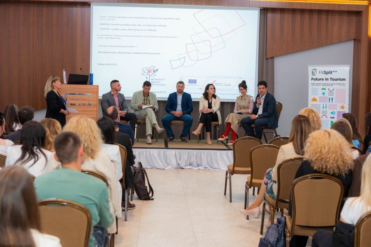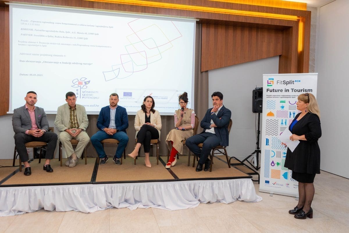 Panelisti: Stipe Čogelja, dožupan splitsko-dalmatinski, Antonio Kuzmanić, dogradonačelnik Splita, Slavko Štefičar ravnatelj Uprave za održivi razvoj i konkurentnost turističke destinacije Ministarstva turizma i športa, Alijana Vukšić direktorica Turističke zajednice grada Splita, Joze Tomaš predsjednik HGK-ŽK Split, Mario Miočić direktor agencije F-tours i Igor Leben voditelj ljudskih potencijala hotela Le Meridien Lav, odgovarajući na pitanja voditeljice Sandre Barčot, složni su u jednom – održivu budućnost hrvatskog turizam trebamo temeljiti na domaćoj, obrazovanoj i kvalitetnoj radnoj snazi!