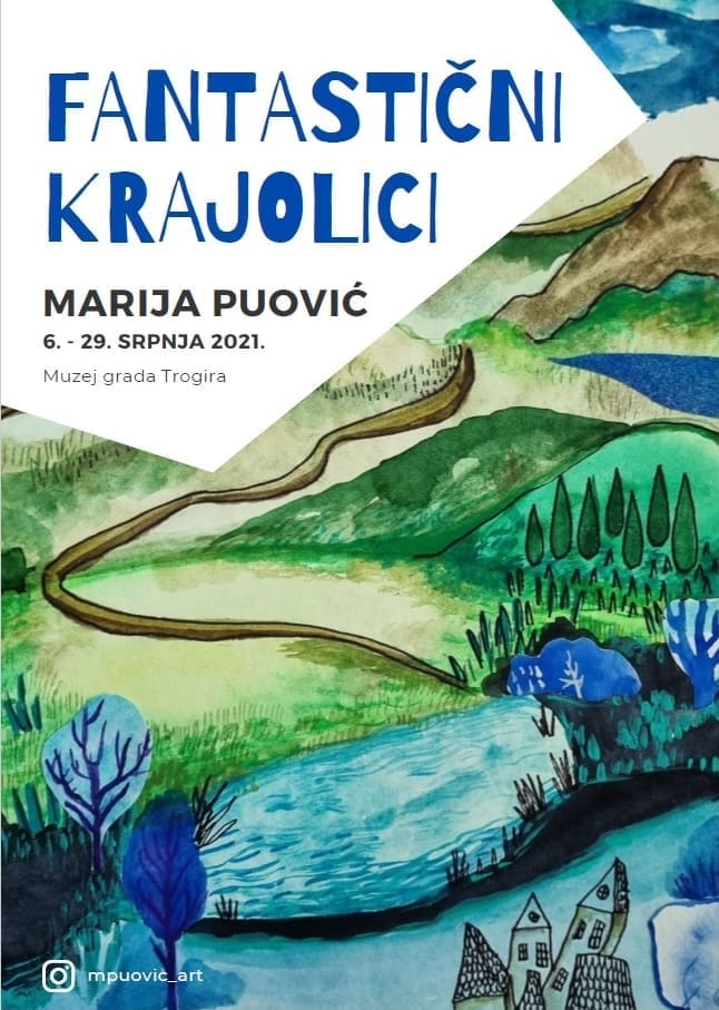 U utorak, 6. srpnja 2021. u 19 sati, u dvorištu Muzeja grada Trogira održat će se otvaranje izložbe Marije Puović “Fantastični krajolici”.