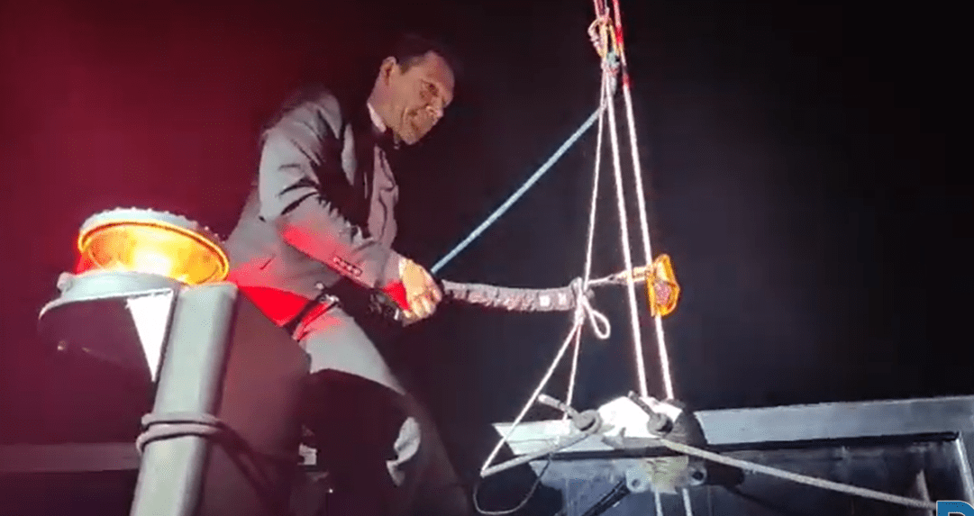 A trenutak večeri je bio kada je alpinist Vedran se uspeo na vanjsku stijenku Towera sa zastavom od preko 200 metara!