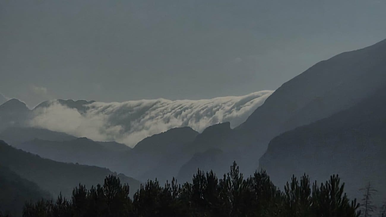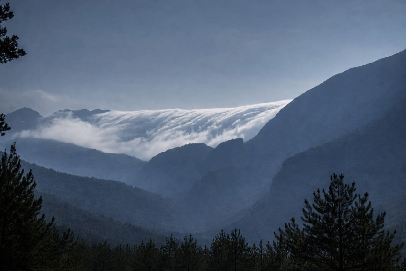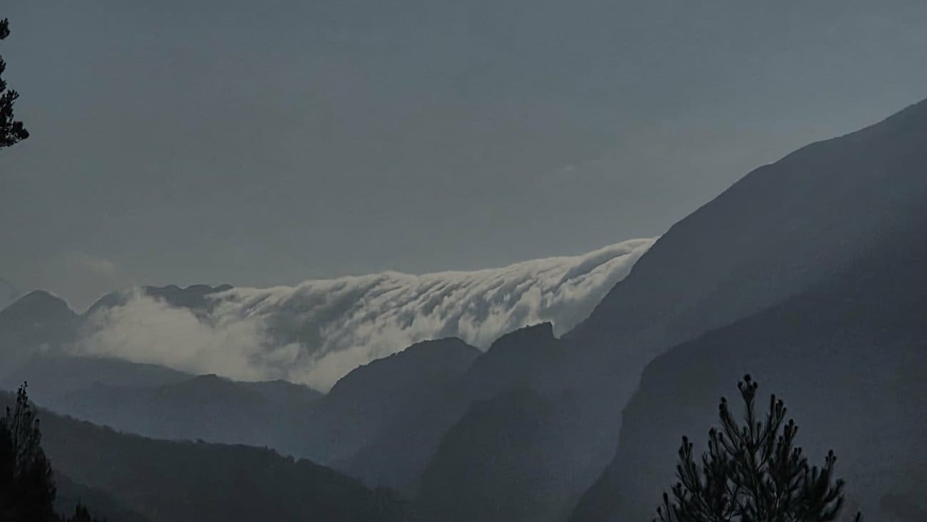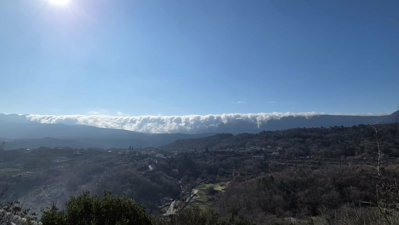 Posebno zanimljiv prizor zabilježen je prijepodne na poljičkom području. Magla i niski oblaci, koji su prekrili more i obalu, prelijevali su se preko grebena obalnih brda prema sjeveru, gdje su postupno nestajali. Riječ je o strujanju zraka s mora prema kopnu. Kada se zrak na sjevernoj strani brda počne spuštati, dolazi do njegova zagrijavanja i isušivanja, pa se magla i oblaci ubrzo razilaze.