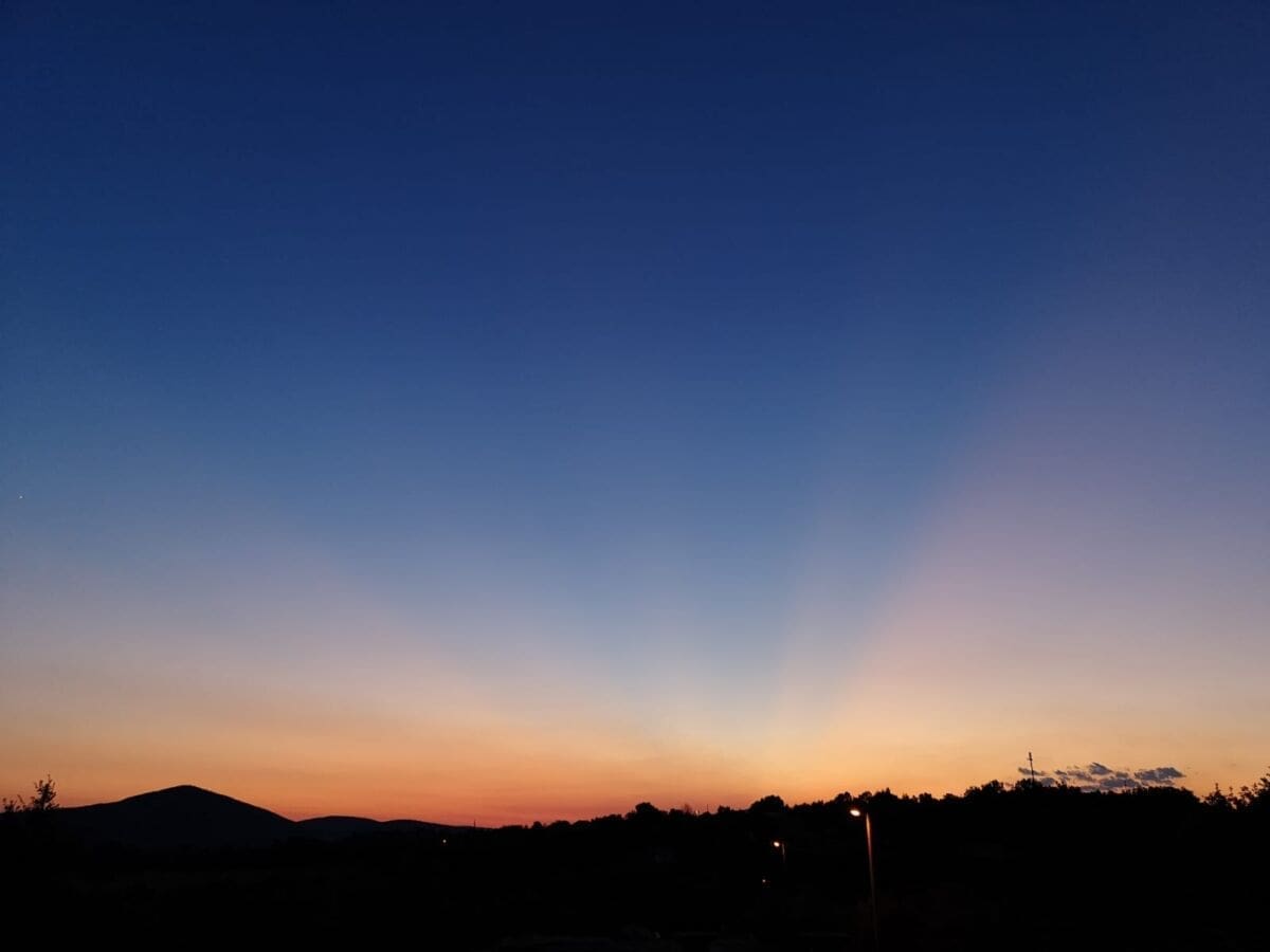 Veći dio Dalmacije mogao je uživati u atraktivnom sutonu jer se sunčeva sjena mogla vidjeti i dugo nakon što je Sunce zašlo. Zanimljivo, sjenu nije stvarao oblak bilo gdje u Hrvatskoj, nego više od 500 km udaljeni olujni oblak iznad sjeverne Italije koji je tamo producirao grmljavinske pljuskove.