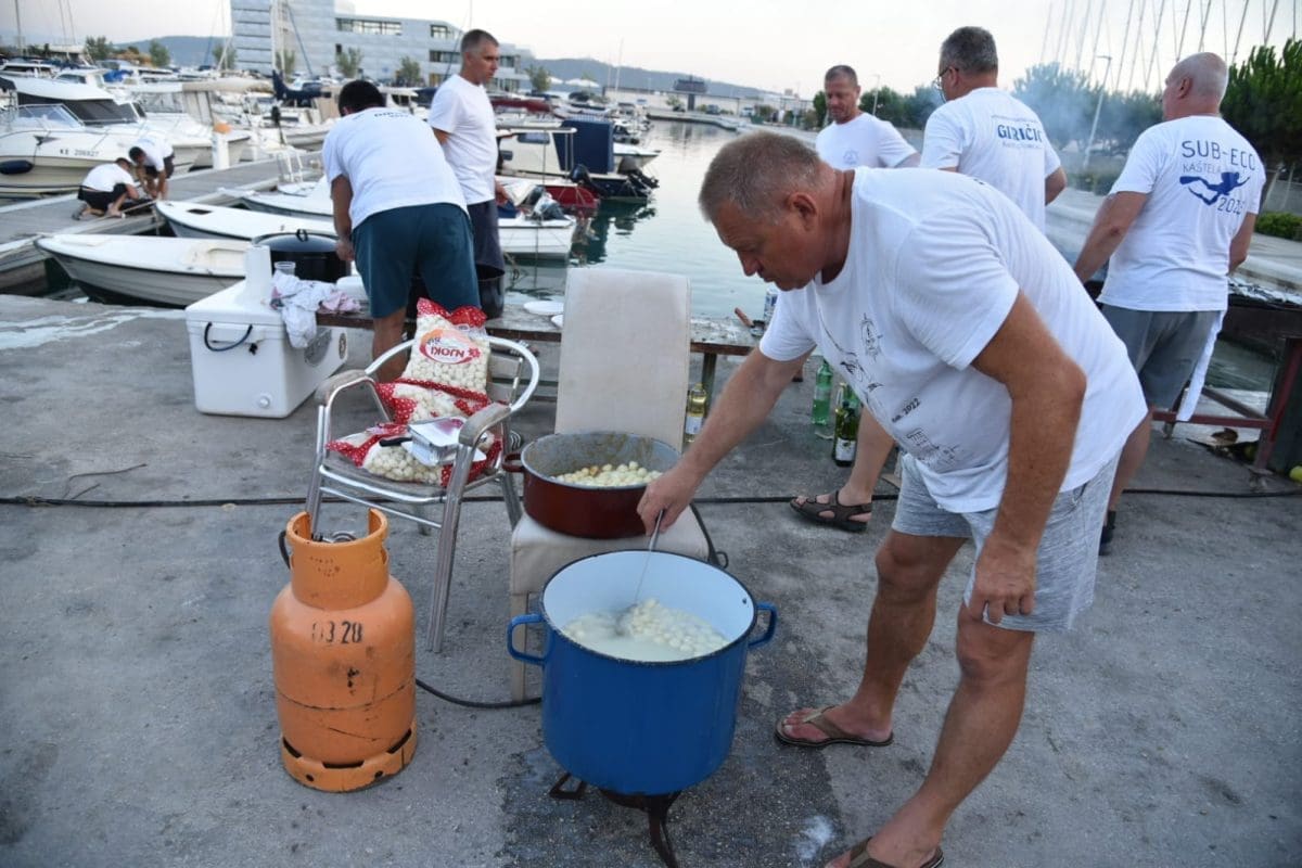 Članovi društva ovaj put su pripremili crni rižot, školjke, tunu i srdelu sa žara te njoke i divljač, a za hranu se čekalo u dugačkom redu.Hladni napitci gasili su žeđ, a atmosferu ove vrele, srpanjske noći ugrijao je Tri gušt te posjetitelje izmamio na plesni podij.