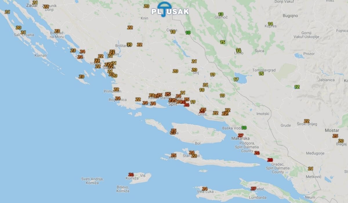 Najhladnije je na Biokovu, Svetom Juri s 9°C i Dinari, Velikoj Duvjakuši s 10°C.