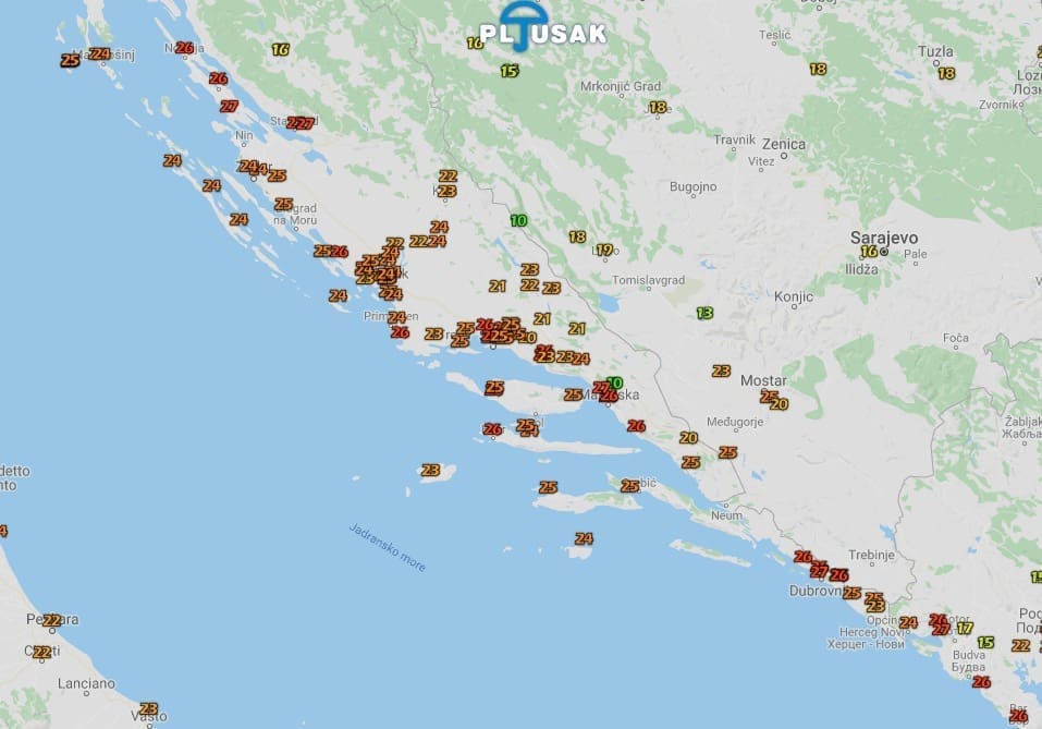 Vrlo slične noćne temperature bilježe se u velikom dijelu Dalmacije, a još stupanj toplije nego u Splitu je na omiškom, makarskom i dubrovačkom području. Bura će imati olujne udare cijele noći, a počet će slabiti tijekom jutra.