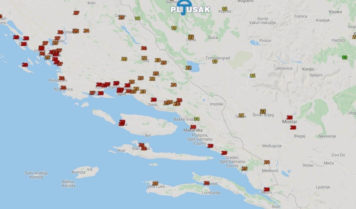 Spomenuti pljusak donio je prolazno izražen pad temperature zraka koje su se na širem splitskom području između 14 i 16 sati ponegdje spustile za 10 do 14 stupnjeva!