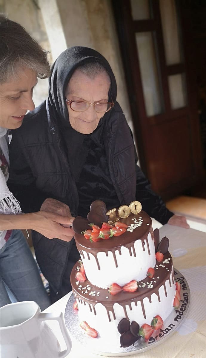 Baka Stana Vrcić - Ćanka iz Radonića kod Drniša jučer je proslavila svoj 100. rođendan. Na velikom obiteljskom slavlju u Radoniću okupila se rodbina koja slavljenici donijela darove, a poseban je trenutak bio kada je stogodišnjakinja puhala svjećice velike, prigodne torte.