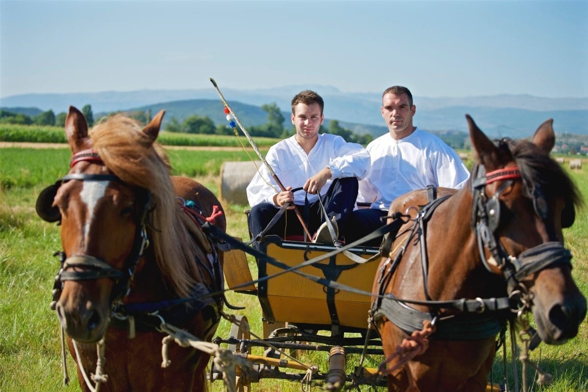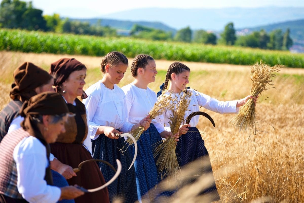 U jutarnjim satima članovi Udruge u Sinjskom polju su snimili prigodni video žetve i kosidbe pšenice te njen prijevoz karom do guvna.