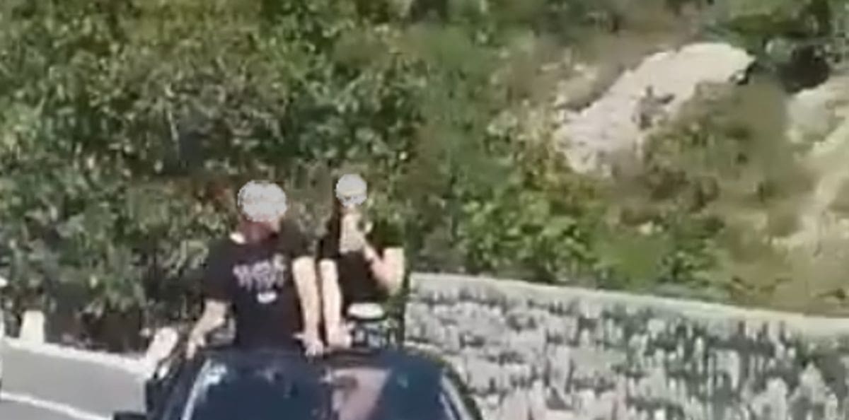 Tome svjedoči i fotografija objavljena na Facebook stranici Prometne zgode i nezgode. Dvojica muškaraca odlučila su popiti piće u vožnji magistralom, oni stoje na nogama do pasa virivši kroz krovni prozor BMW-a.