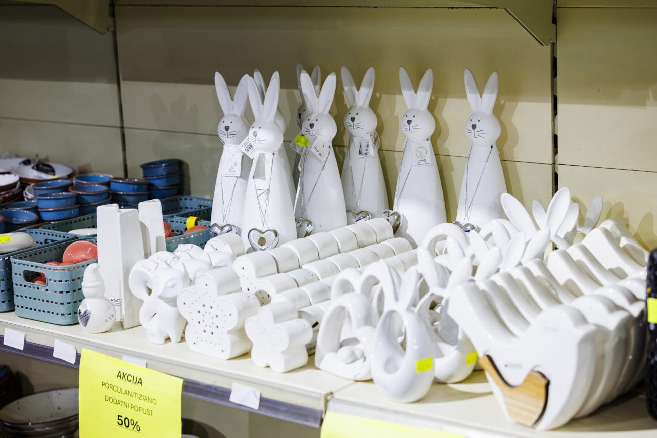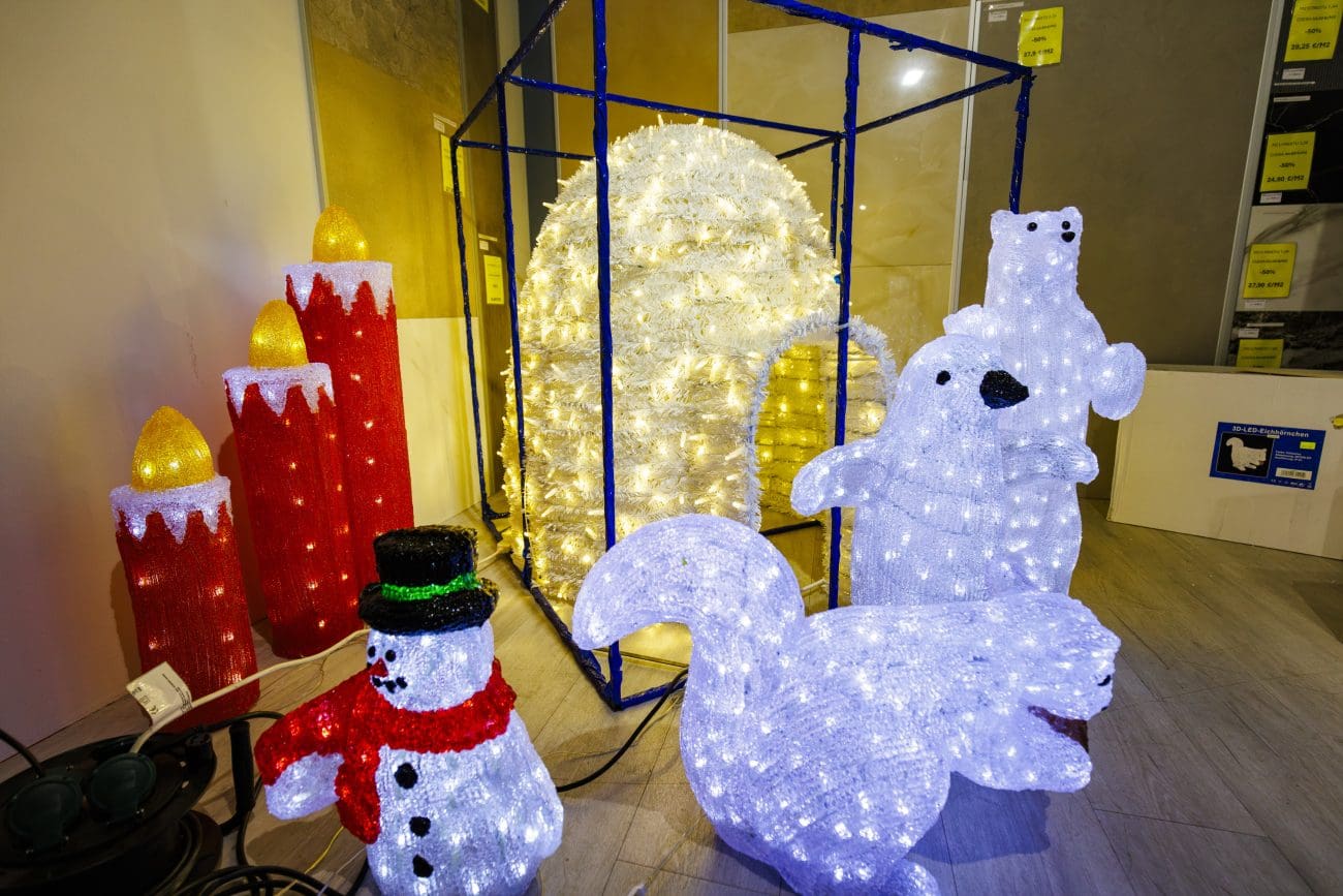 Glavni naglasak trenutačno je na blagdanskim artiklima: cijeli božićni asortiman snižen je 50 posto, dok su LED figure na popustu od 30 posto. Snjegovići, svjetleće svijeće, medvjedi i drugi motivi dostupni su u više dimenzija, uz znatno povoljnije cijene u odnosu na ranije sezone.