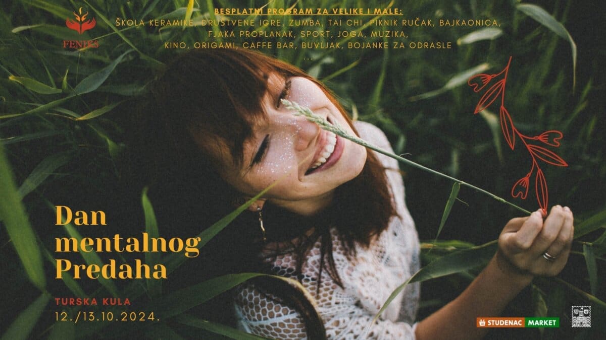 Udruga Feniks Split poziva sve sugrađane na dvodnevni Festival "Dan mentalnog predaha" – festival posvećen mentalnom zdravlju, koji će se održati ovog vikenda, 12. i 13. listopada 2024. godine, u predivnom ambijentu parka na Turskoj kuli u Splitu.
