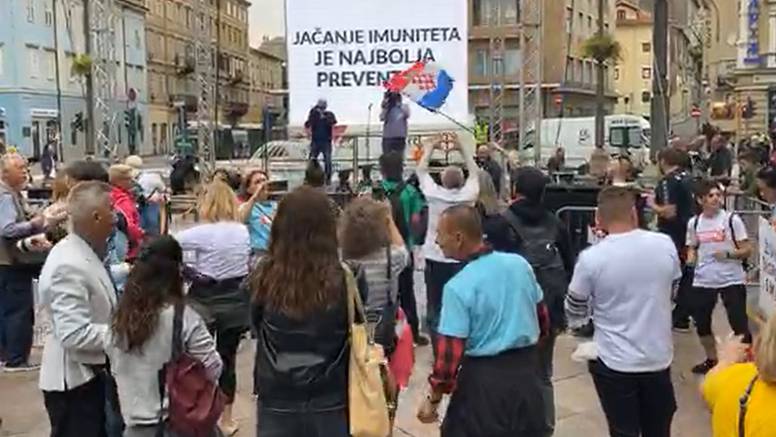 U Rijeci je nešto nakon 15 sati počeo prosvjed protiv mjera Nacionalnog stožera, koji kao i u Zagrebu nosi ime Festival slobode. Na događaju se okupilo stotinjak ljudi, puno manje nego u Zagrebu. Hrvoje Pende, govoreći o mjerama po svijetu, spomenuo je ulogu Bill Gatesa na što su okupljeni počeli hukati.