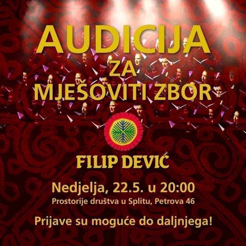 KUDŽ "Filip Dević" objavio je da se osniva novi mješoviti zbor.