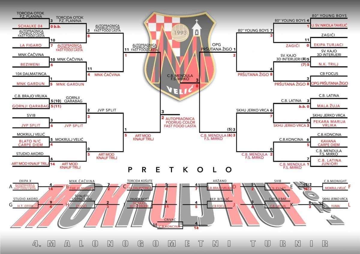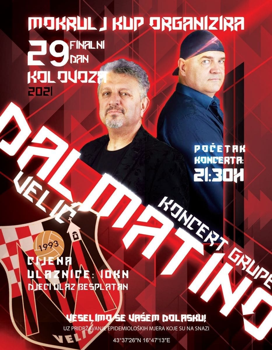 Dođite u Velić, pogledajte utakmice najboljih ekipa te uz jelo i piće Mokrulj bara ugodno se zabavite uz nastup grupe Dalmatino.