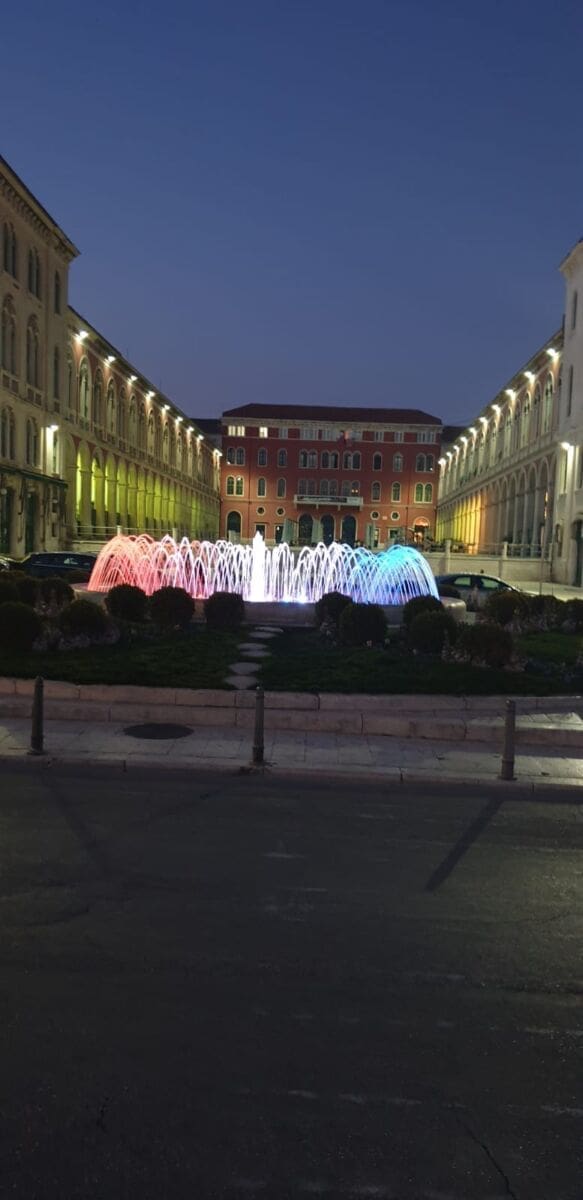 Nakon što je prvotno fontana svijetilila bojama u čast sv. Patrika, jučer smo svjedočili bojama Italije, čime se iskazala sućut zbog brojnih smrtnih slučajeva na Apeninskom poluotoku.