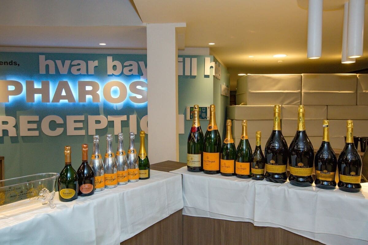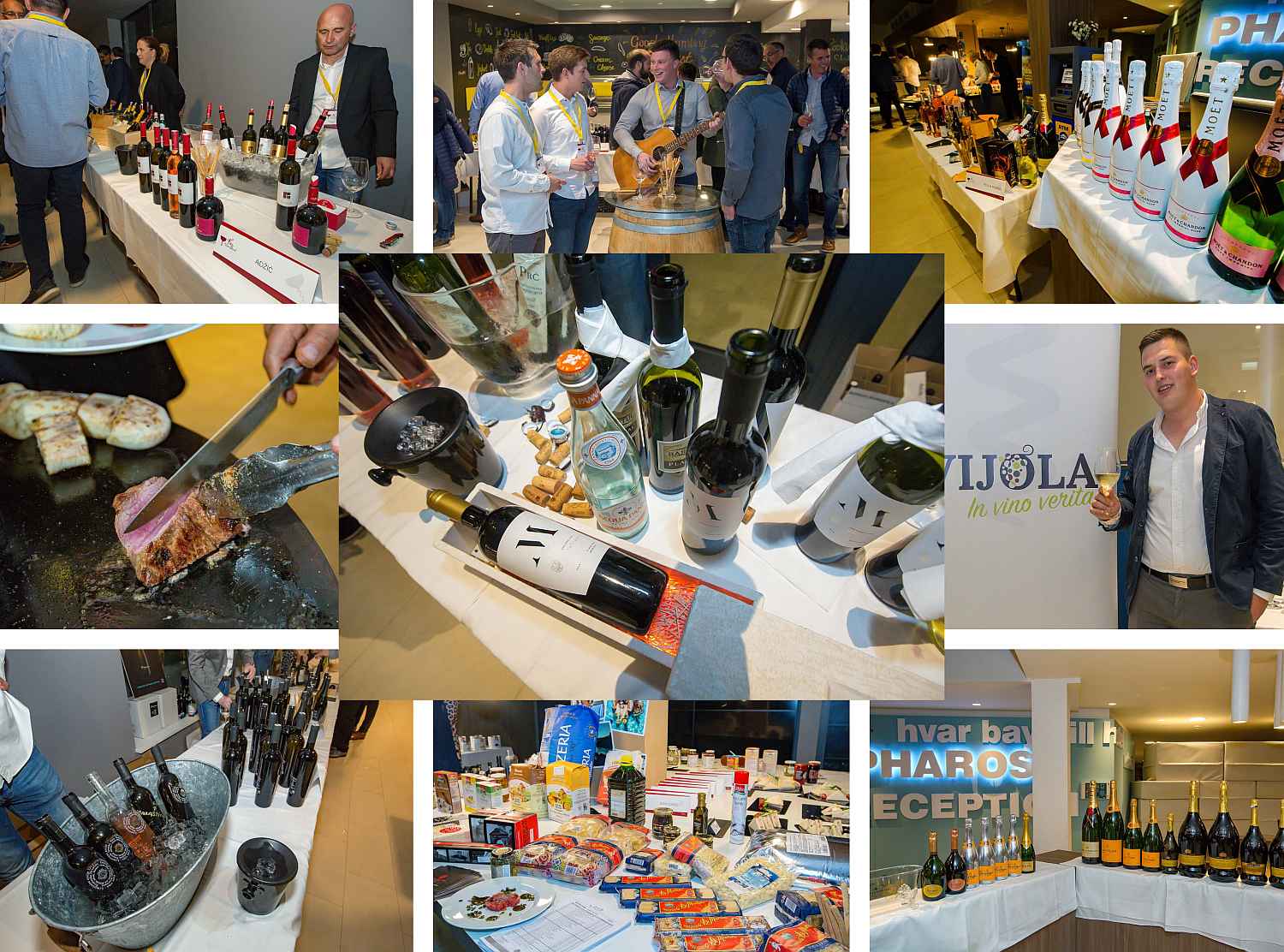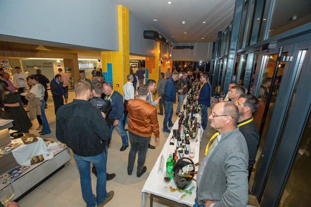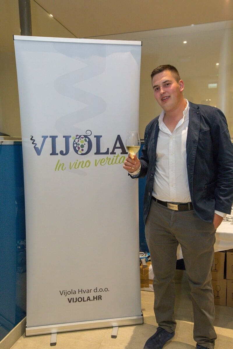 Mladi gospodin Žuvela (23) uspio je u Pharos dovesti više od trideset vinara i distributera. Među vinskim kućama podjednako su bile zastupljene lokalne, s Plenkovićem, Tomićem, Carićem i Dubokovićem, kao i vinarije iz drugih dijelova Hrvatske, poput Galića ili Griffina.