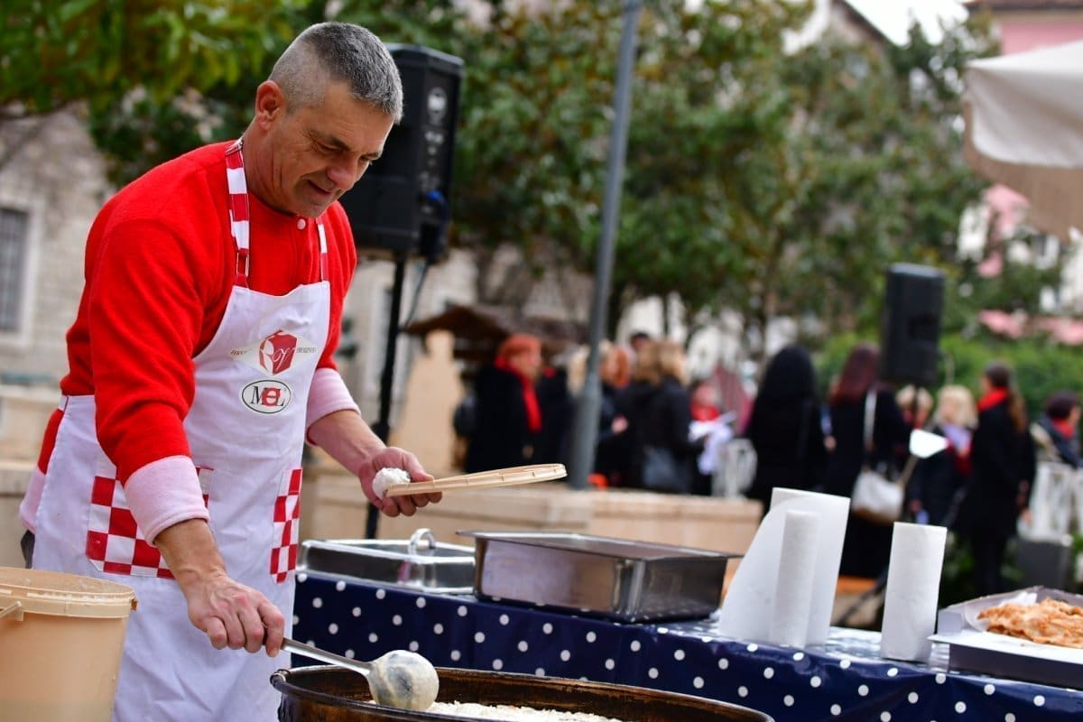 Turistička zajednica grada Sinja je i ovaj put uz Udruga Sinjski ferali priredila prigodan program uz fritule, uštipke, medenjake i tople napitke, koje su pripremili Ankicin slatki svijet , Marija Vučković i Edo Crljen.