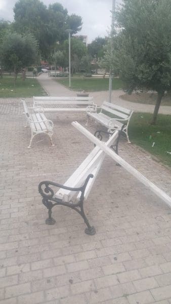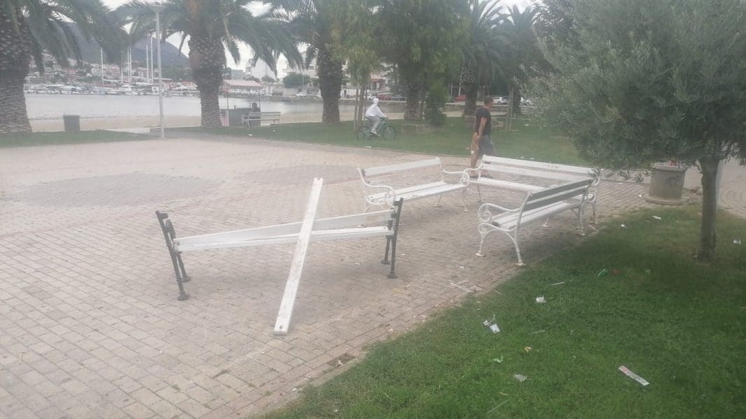 Po tko zna koji put Stobrečane su dočekali neugodni prizori u samom centru naselja. Uništene klupe, razbacane daske, gomila boca i smeća posvuda.