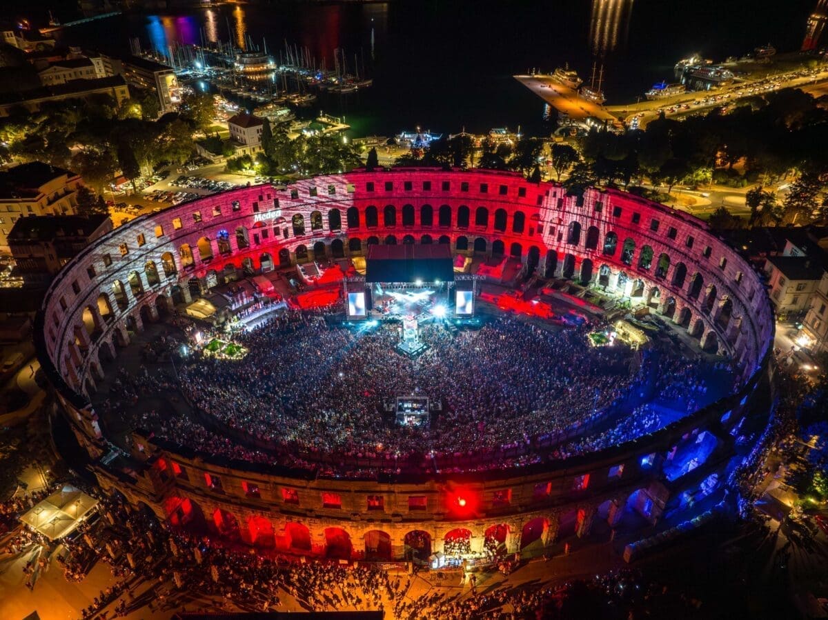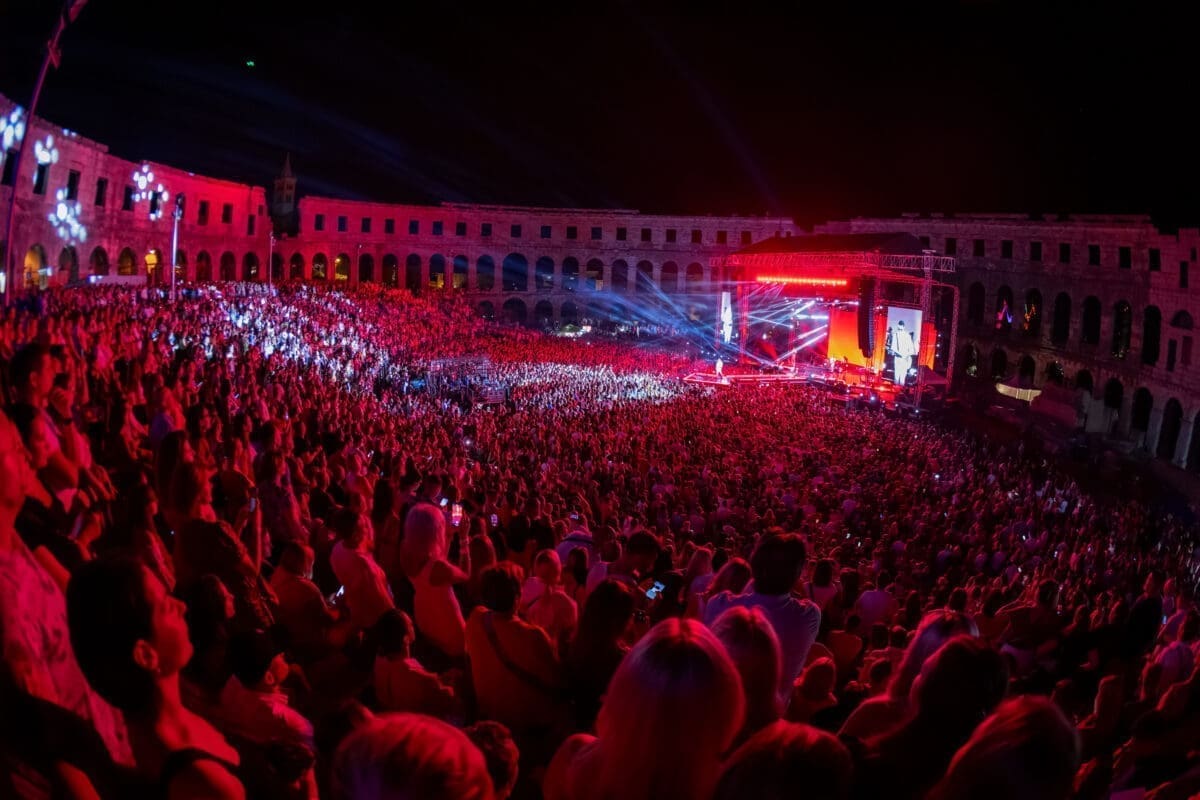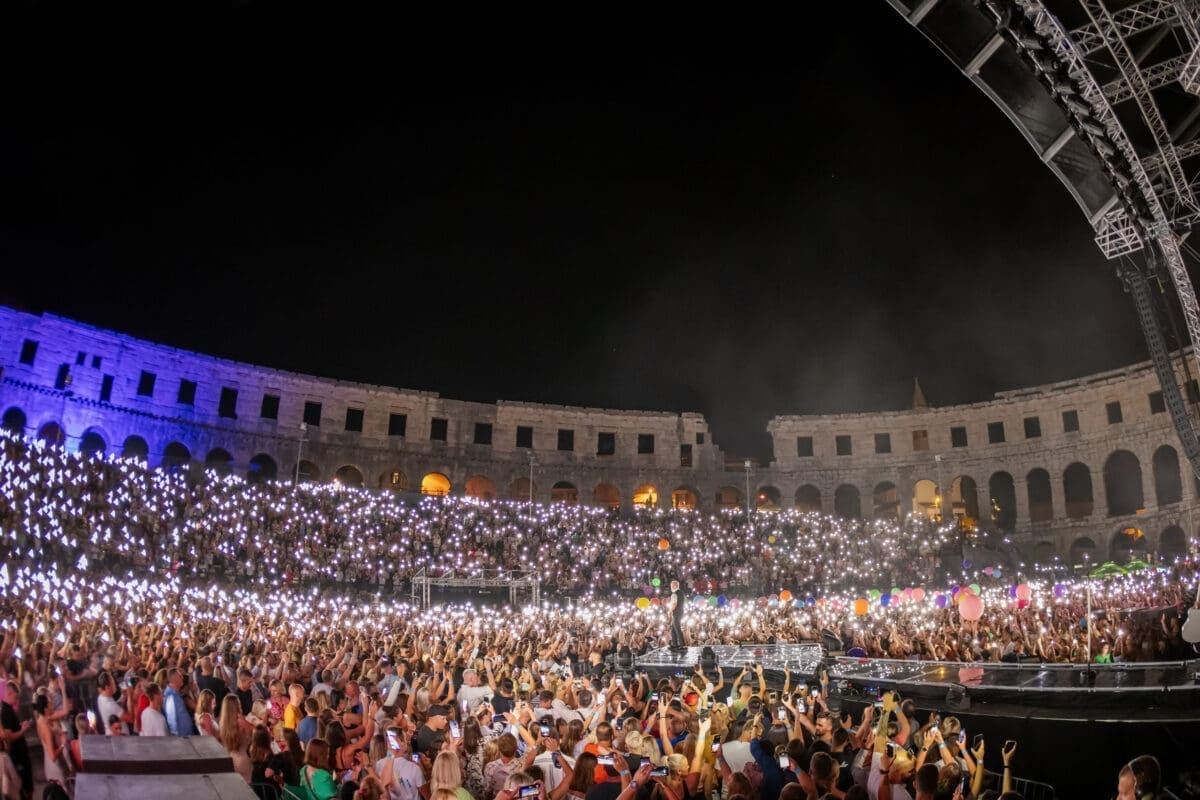 Kultna pulska Arena u subotu navečer zasjala je posebno magičnim sjajem. Najveći glazbeni čarobnjak na Balkanu održao je spektakularni koncert pod zvjezdanim nebom gdje su se glazba, ljubavna i iskrena emocija, nezaustavljiva scenska energija i sveopće oduševljenje publike mogli čuti iz tisuća i tisuća raspjevanih grla koji su uz Dinu Merlina doživjeli njegov najiščekivaniji koncert ovog ljeta.