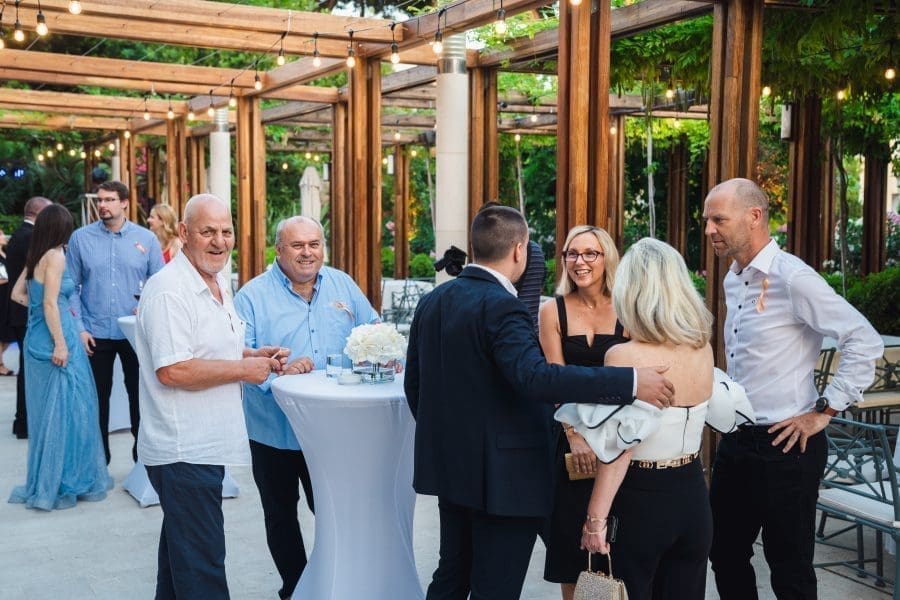Saksofonom, glazbenim gostima iznenađenja, zakuskom i tortom u prekrasnom ambijentu splitskog hotela Park na vanjskoj terasi obitelj Kosor upriličila je 8. rođendan svog dentalnog centra Dentech.