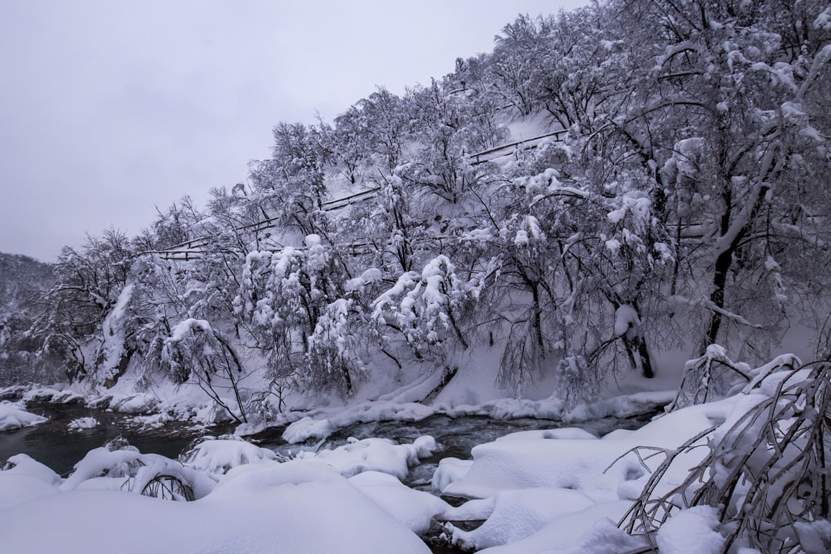 Kad se govori o Plitvičkim jezerima teško je naći pridjeve koje još niste čuli, ali koji god da upotrijebimo vjerujem kako nećemo pogriješiti. Snijegom i ledom prekriven najstariji nacionalni park je prizor koji morate barem jednom u životu vidjeti. Slapovi, jezera i stabla pod bijelim pokrivačem, zaleđeni Veliki slap, a u pozadini blagi šum vode koja je uspjela pronaći put kroz led kako bi stvorila potpuni ugođaj zimske, svjetski priznate, UNESCO prirodne baštine.