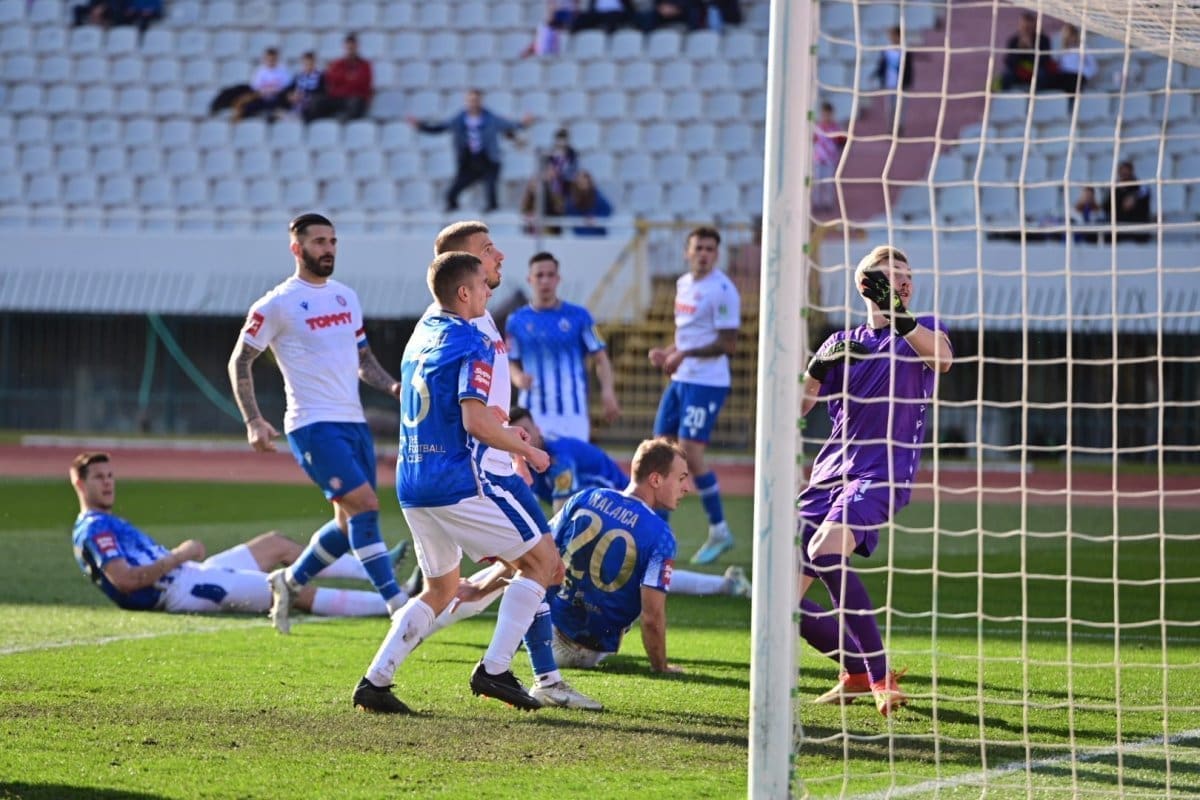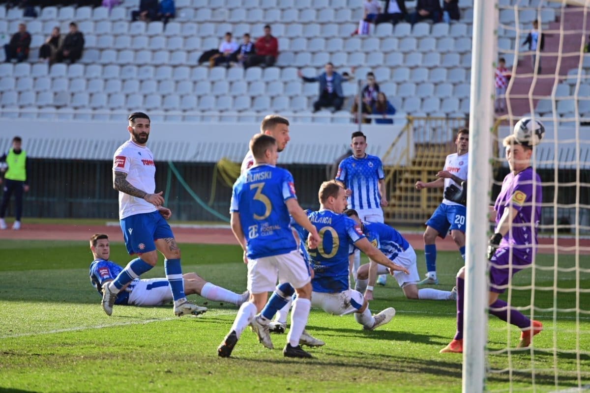 U jeku Hajdukovih napada Lokomotiva u 12. minuti stiže do vodstva. Cipetićev ubačaj s desne strane završio je na prvoj stativi gdje je Bubanja samo ispružio nogu i matirao Lučića za 0:1.