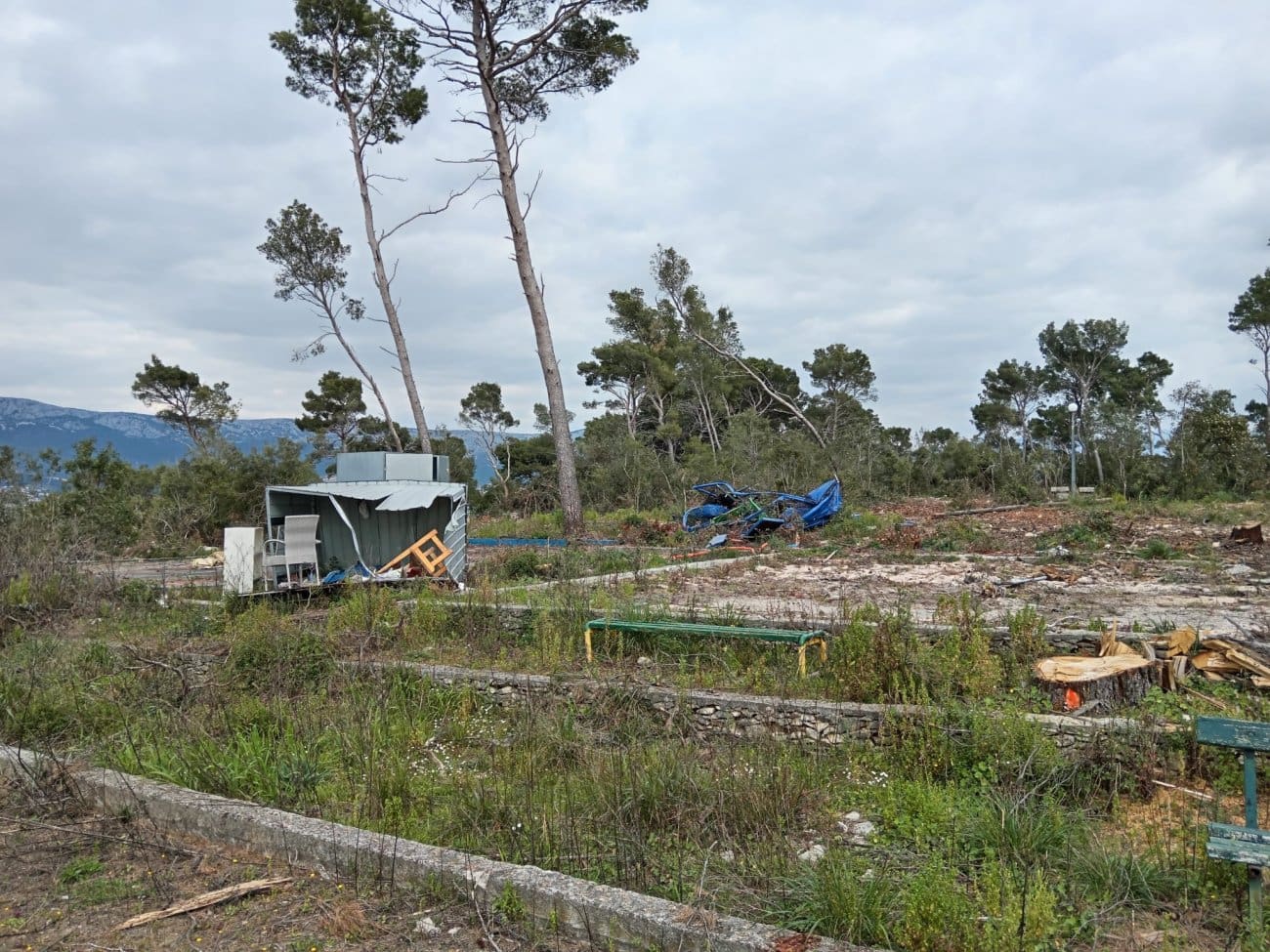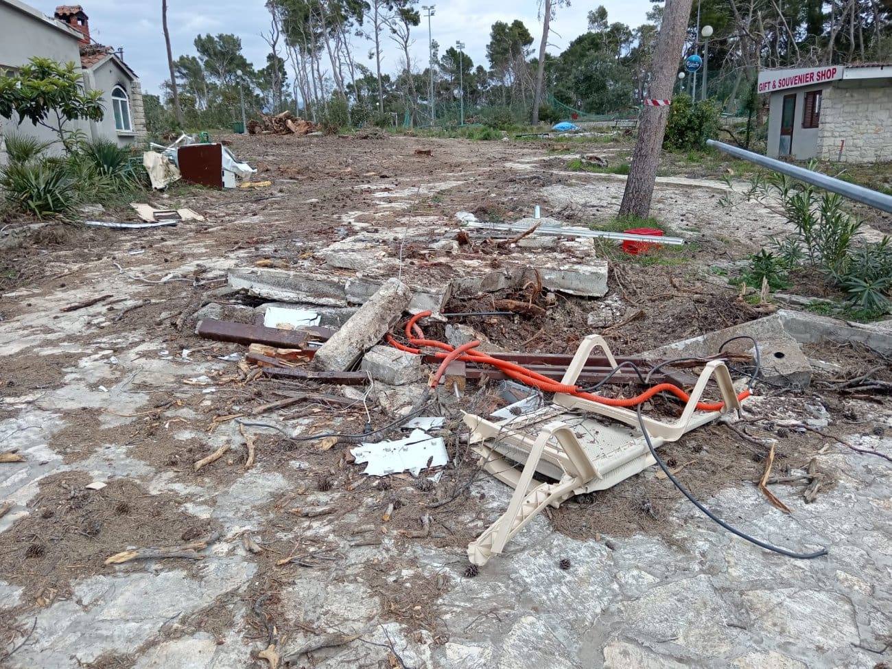 U objavi ističu kako su tek sada, nakon uklanjanja oštećenog drveća, jasno vidljivi nelegalni zahvati koji su se, tvrde, provodili desetljećima. Prema njihovim podacima, na tom je području izgrađeno oko 1700 četvornih metara nelegalnih teniskih terena, 900 četvornih metara nogometnog igrališta te dodatnih 350 četvornih metara betonskih platoa za ugostiteljske sadržaje.